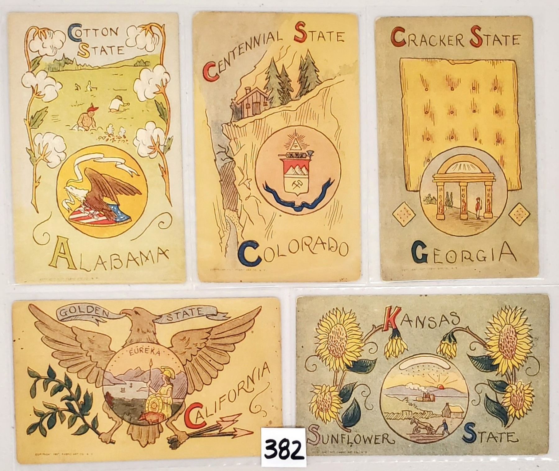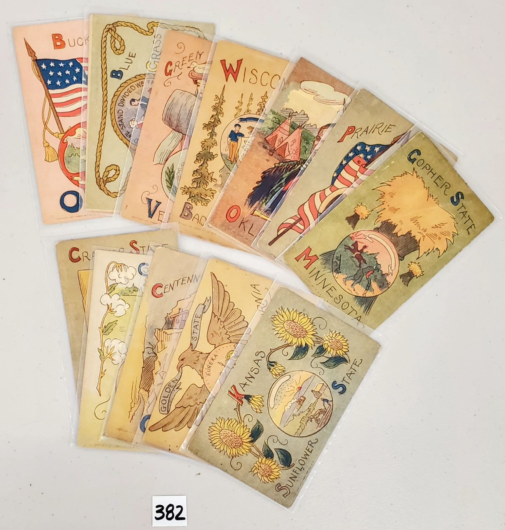 12 state card postcards. Early.