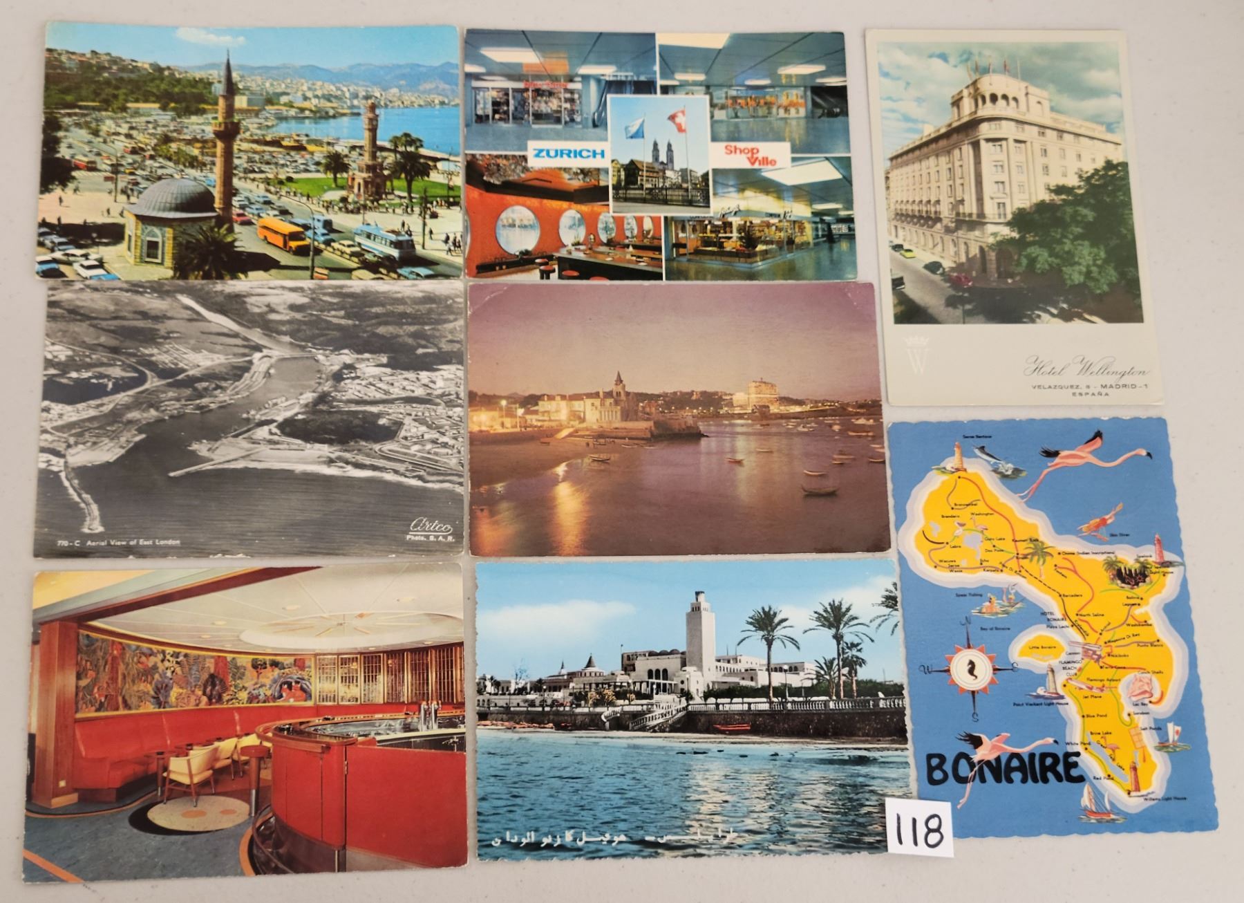 Over 1100 international postcards. Partially sorted. Over 40+ countries. Early to continental chrome. Mostly continental chrome.