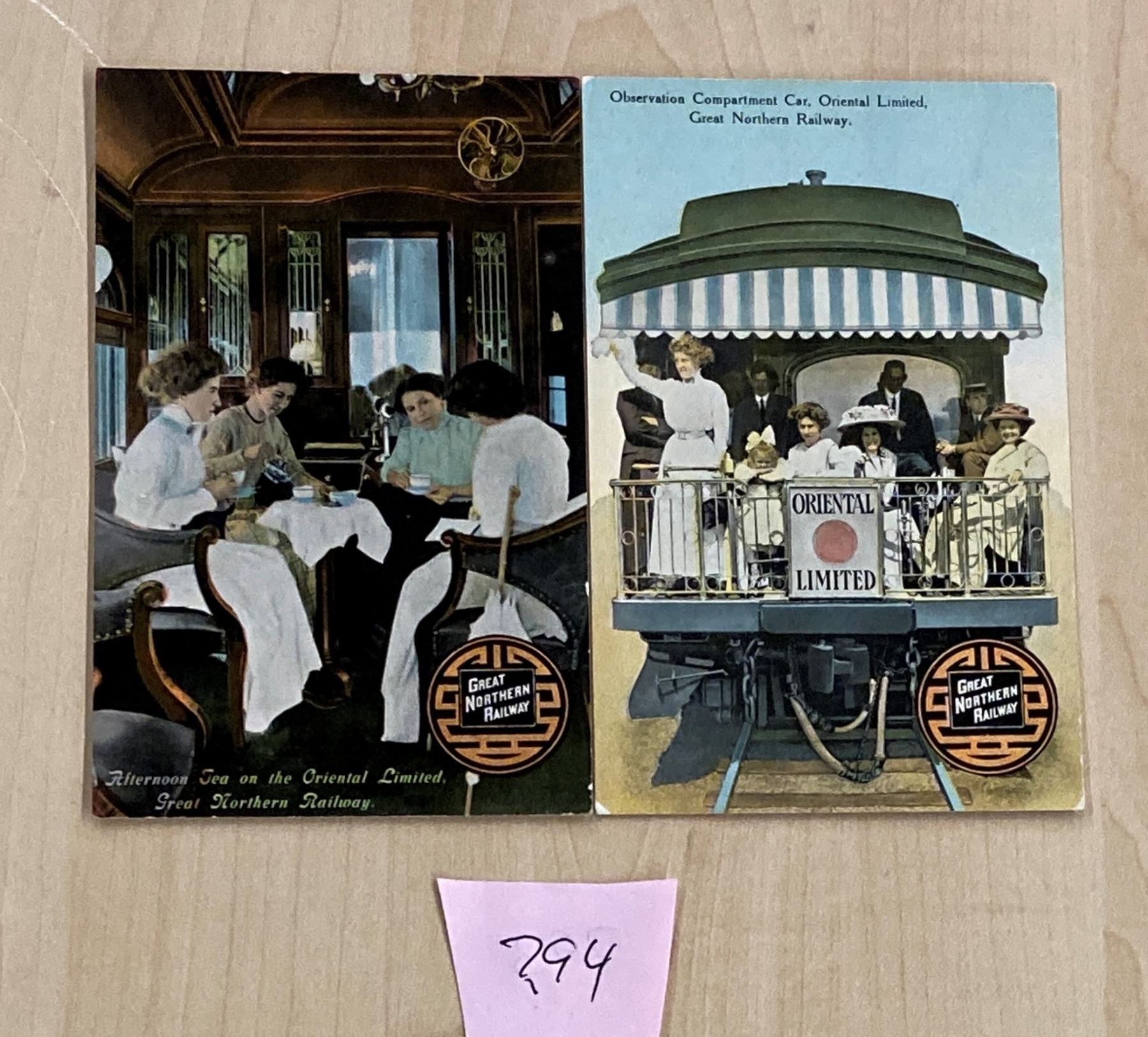 Afternoon tea on the Oriental Limited and Observation Compartment Car, Oriental Limited. Unused. One has a stamp but unused.