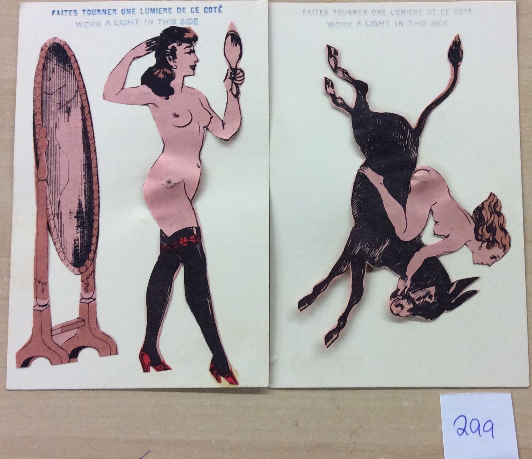 2 nude novelty postcards.
