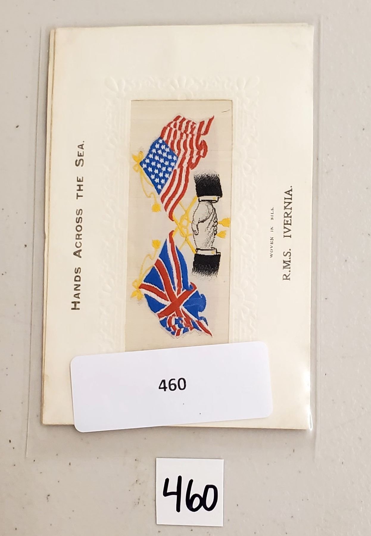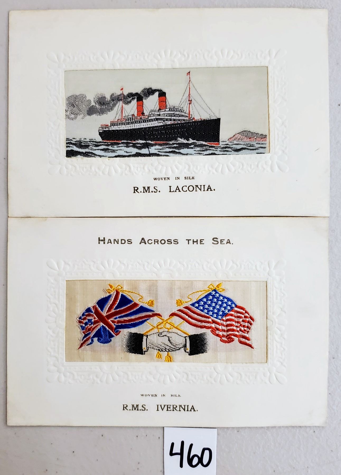 2 Novelty Woven in Silk RMS Laconia & Ivernia Ocean Liner Postcards