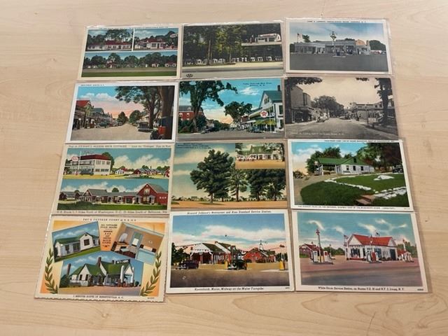From all over USA. Mostly linen, with a few pre linen era. Used and unused.