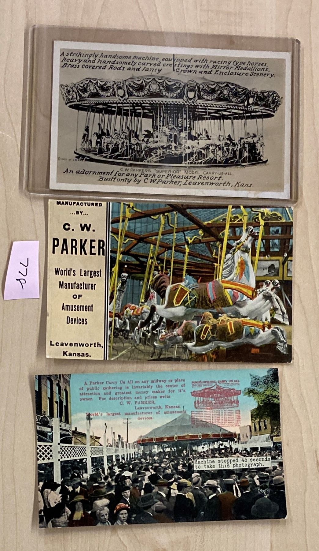 3 Amusement Park Rides Carousels CW Parker Leavenworth, Kansas Postcards