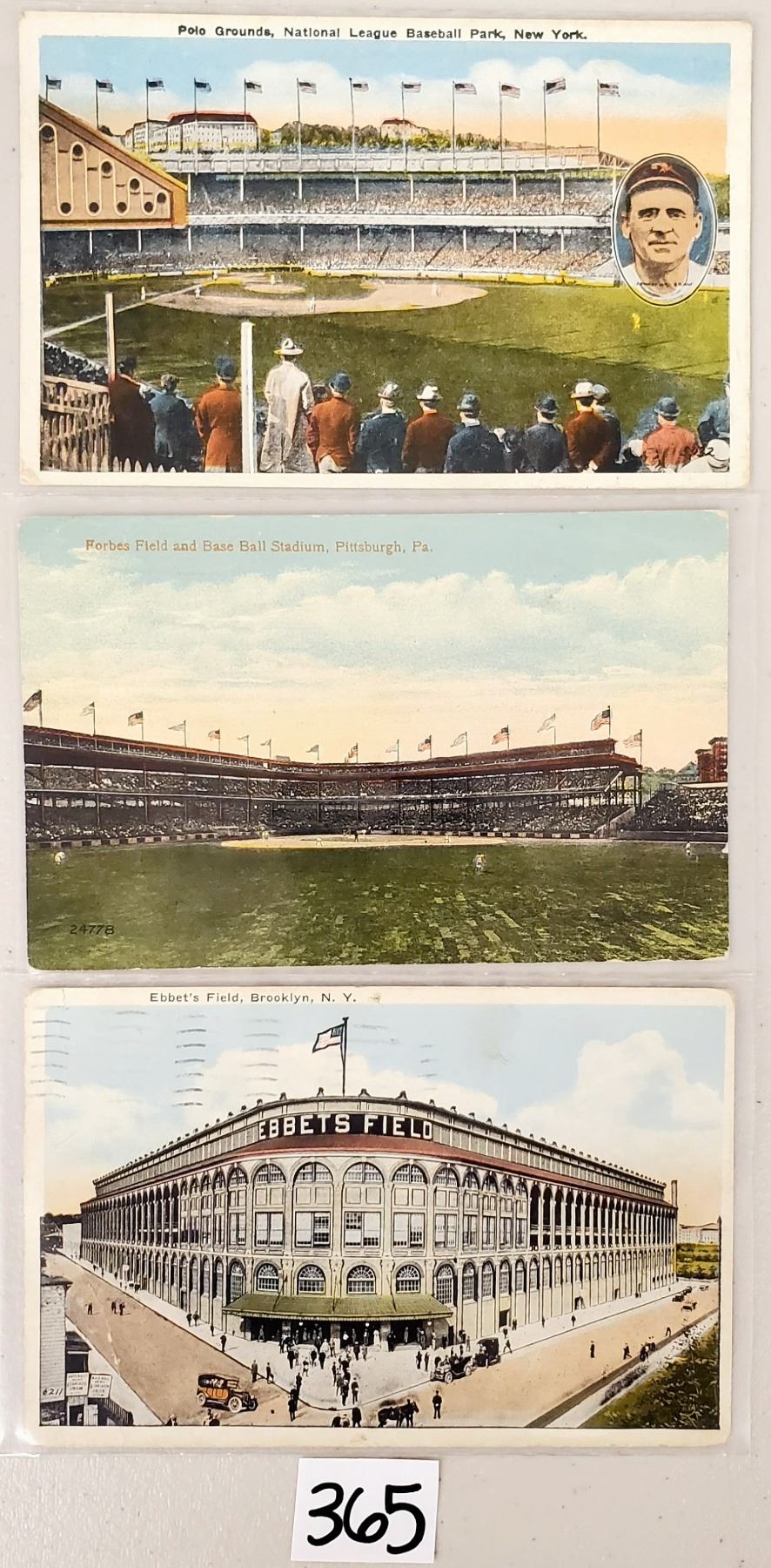 3 early baseball stadiums. Forbes, Polo Grounds & Ebbet's Field. The Ebbet's Field has a pin hole.