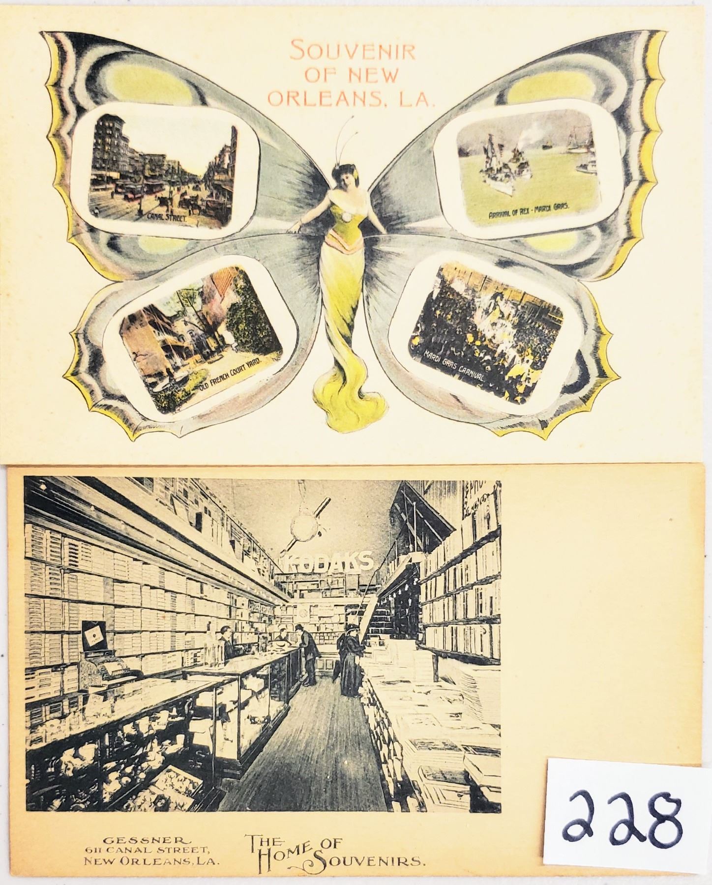 3 New Orleans, Louisiana Postcards Butterfly Girl, Interior & Novelty