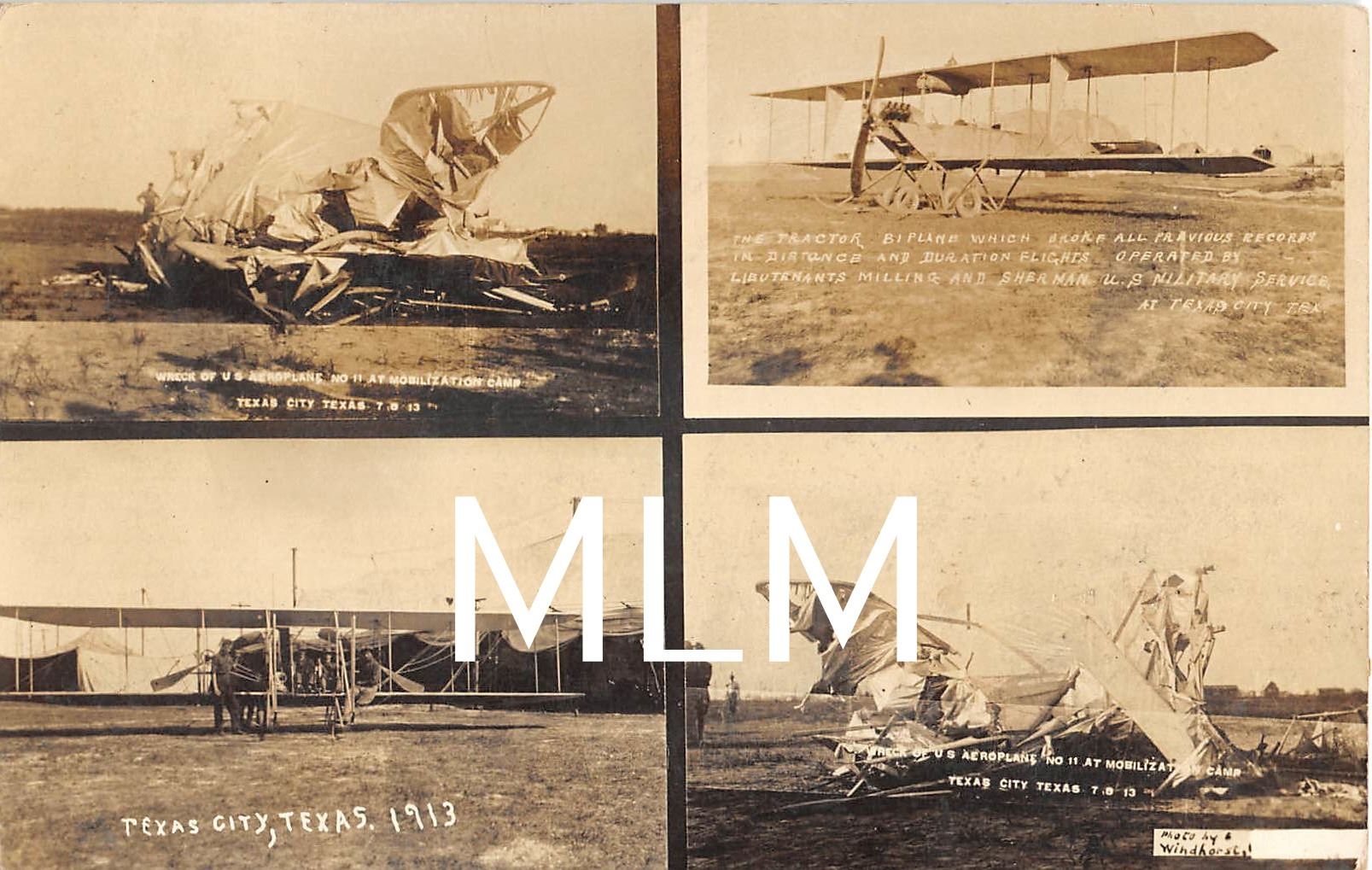 4 View 1913 Aeroplanes & Wrecks Texas City, Texas Photo Postcard