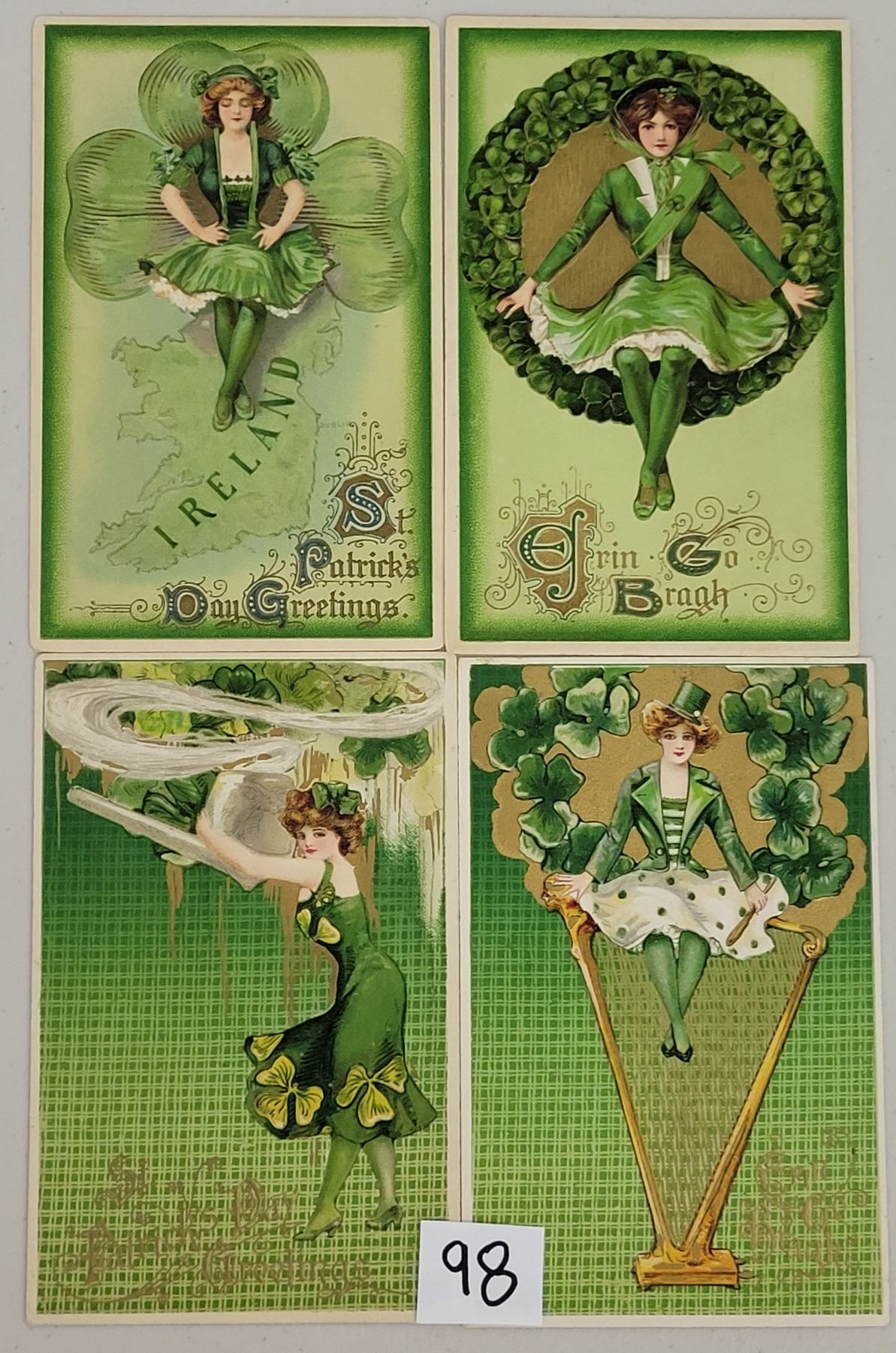 4 Winsch Lady St. Patrick's Day Holiday Greeting Postcards
