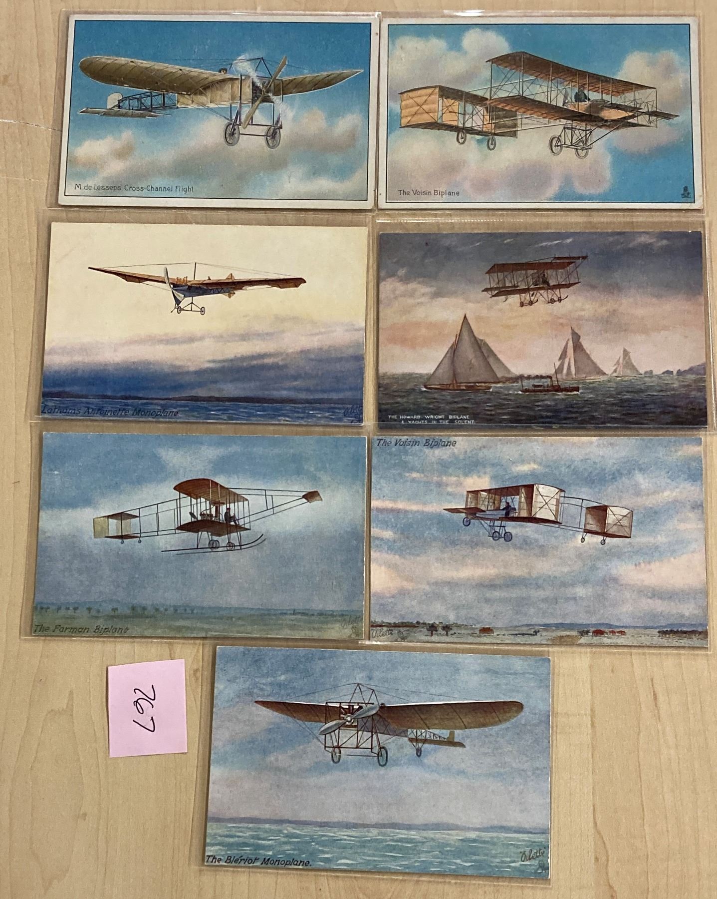 Tuck Series "Famous Aeroplanes", "Aviation" & "Ships of the Sea and Air". A couple have some wear. Unused.