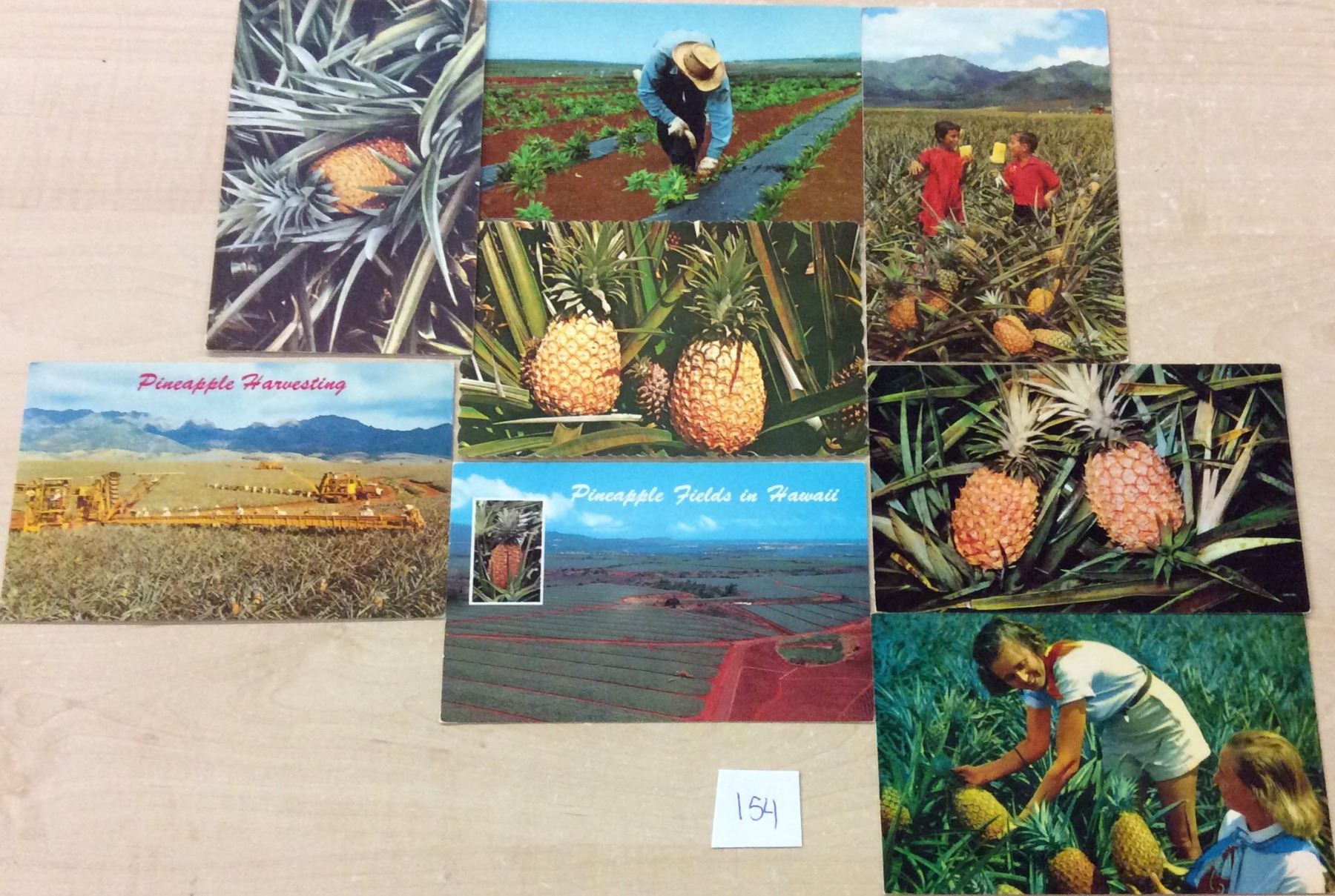 8 vintage postcards from the fifties to sixties, relating to pineapples in Hawaii.