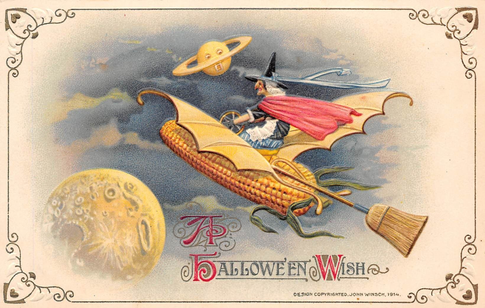 A Halloween Wish Winsch on Corn Broom Holiday Greeting Postcard