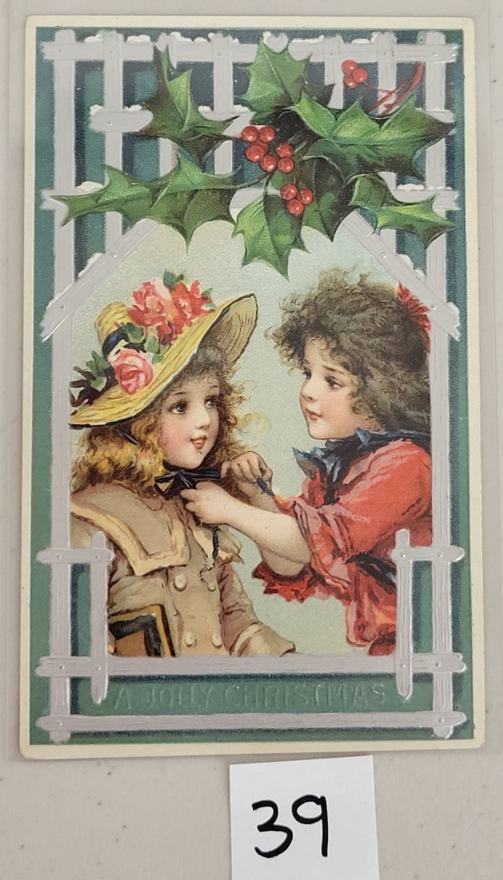 A Jolly Christmas Children Under Holly Brundage Postcard