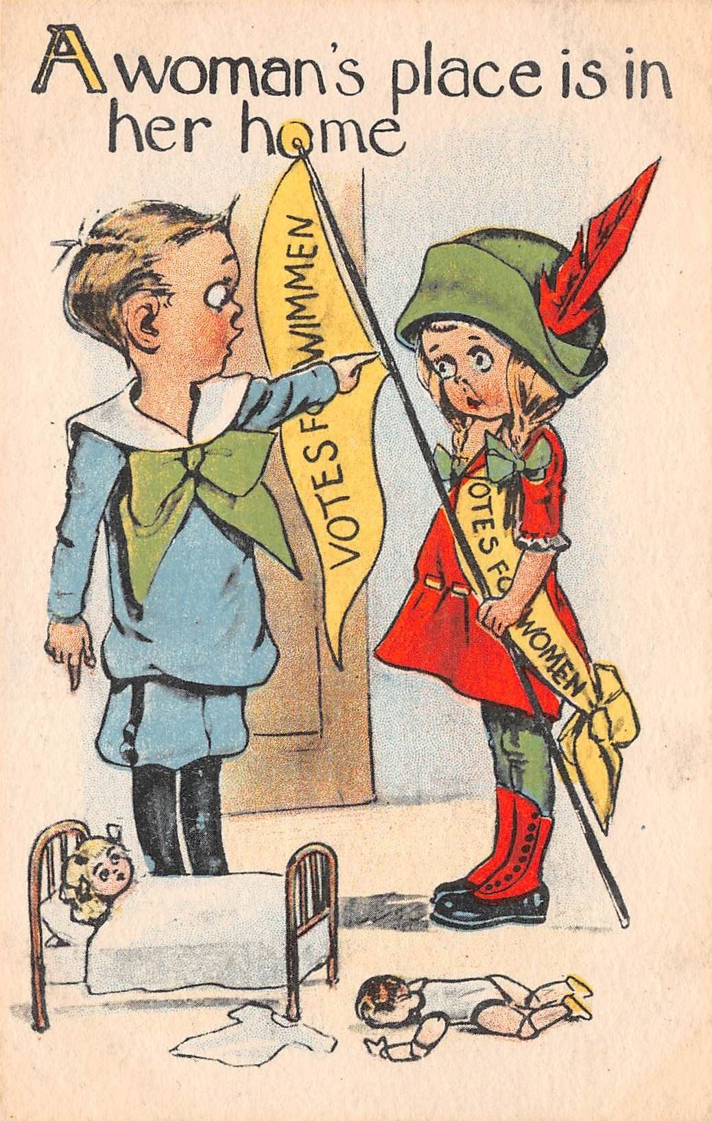 "A woman's place is in her home" Vote For Women Suffrage Postcard