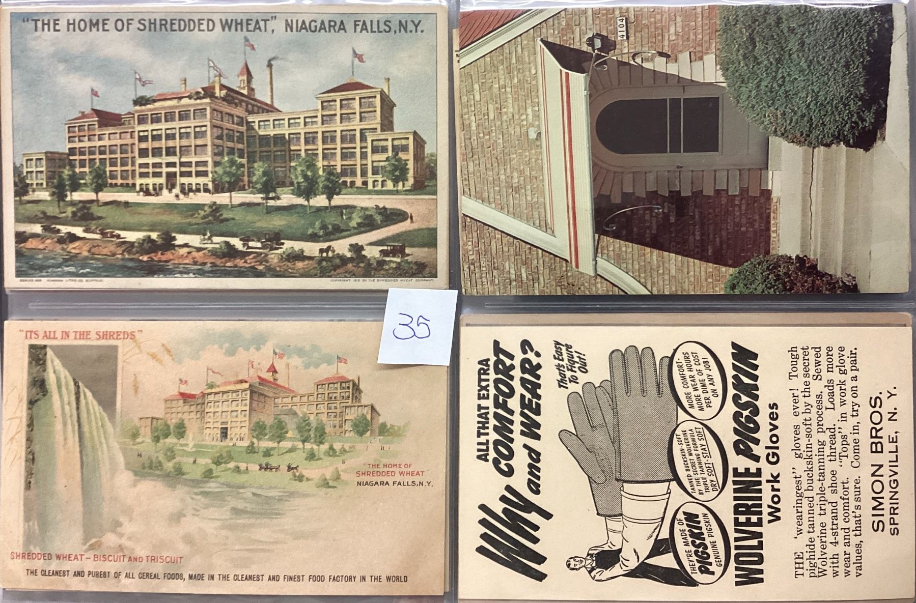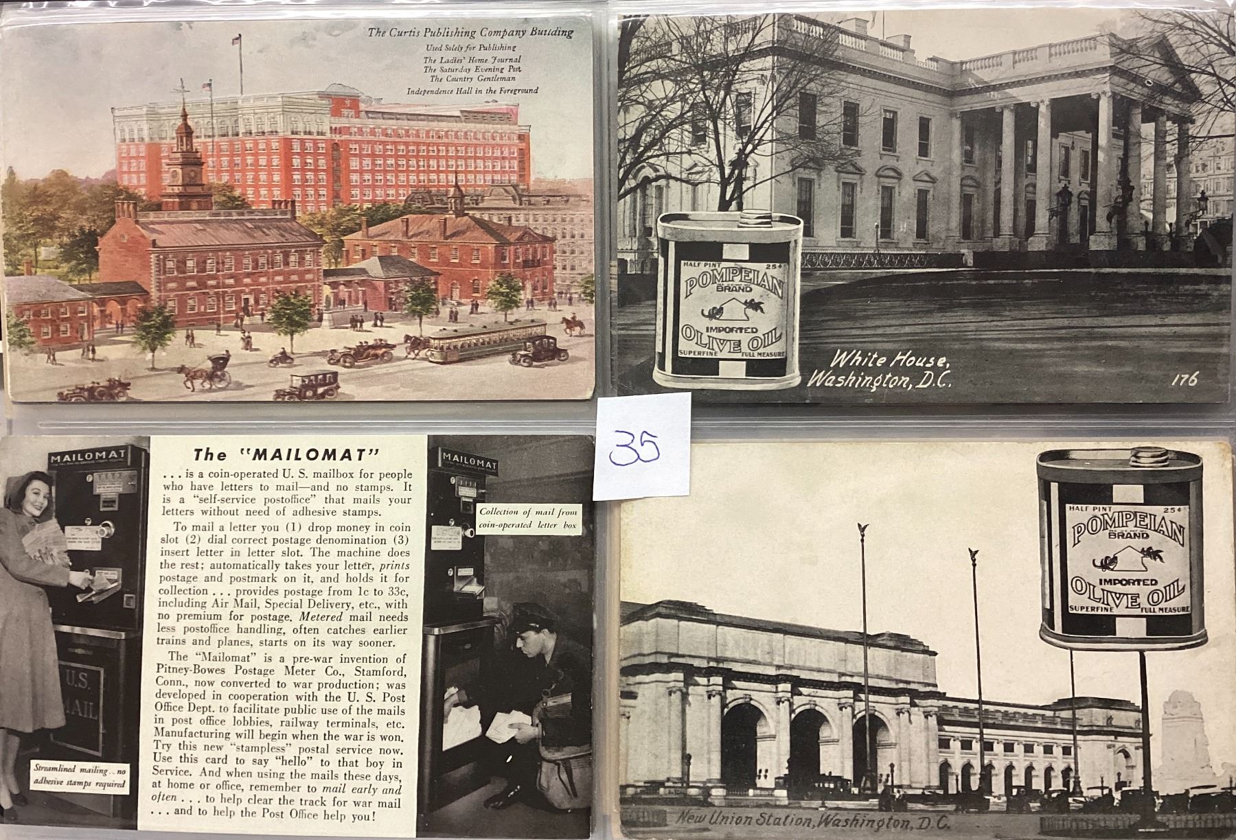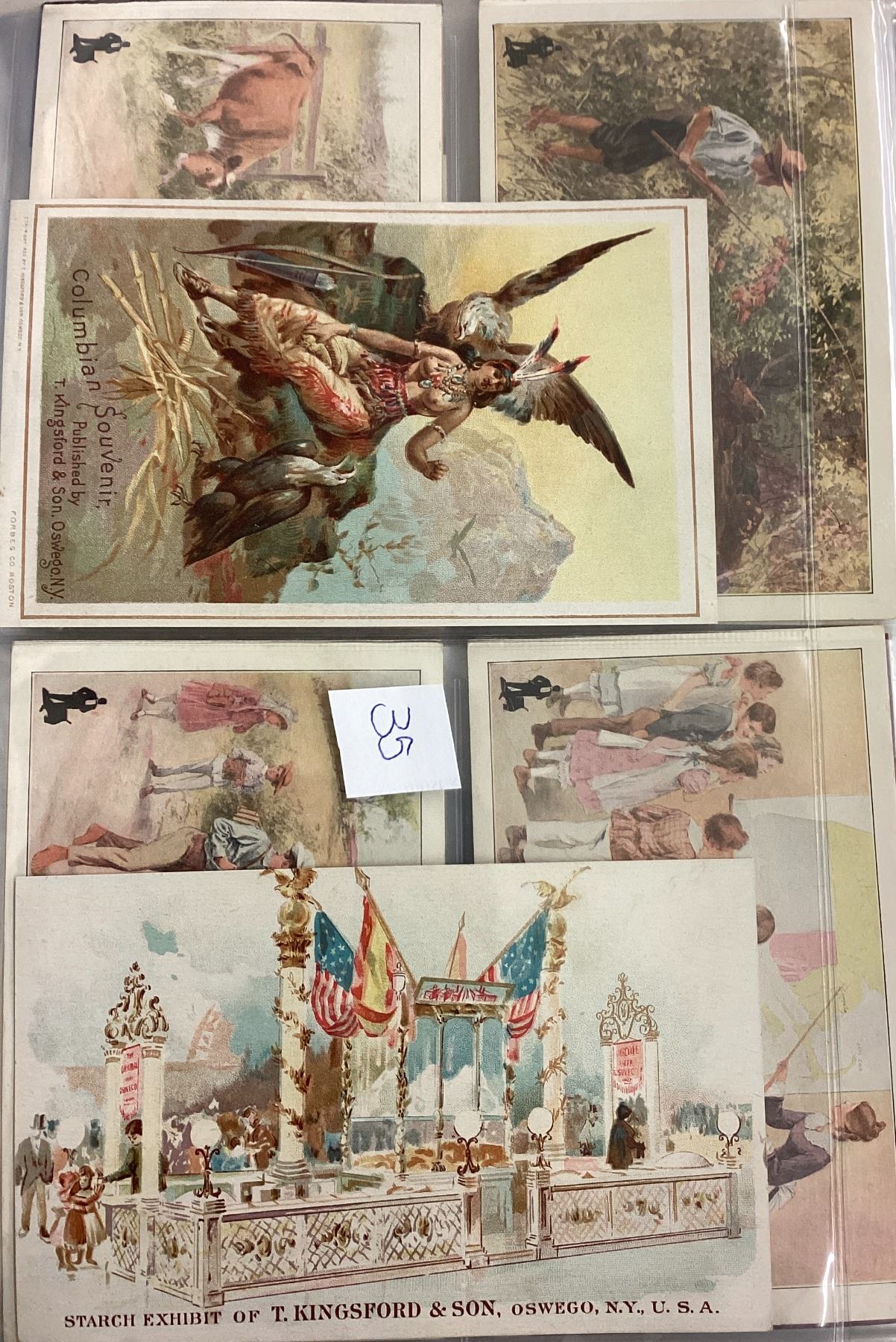 Album of over 100 cards. Mostly postcards, a few trade cards. Early to standard size chrome.
