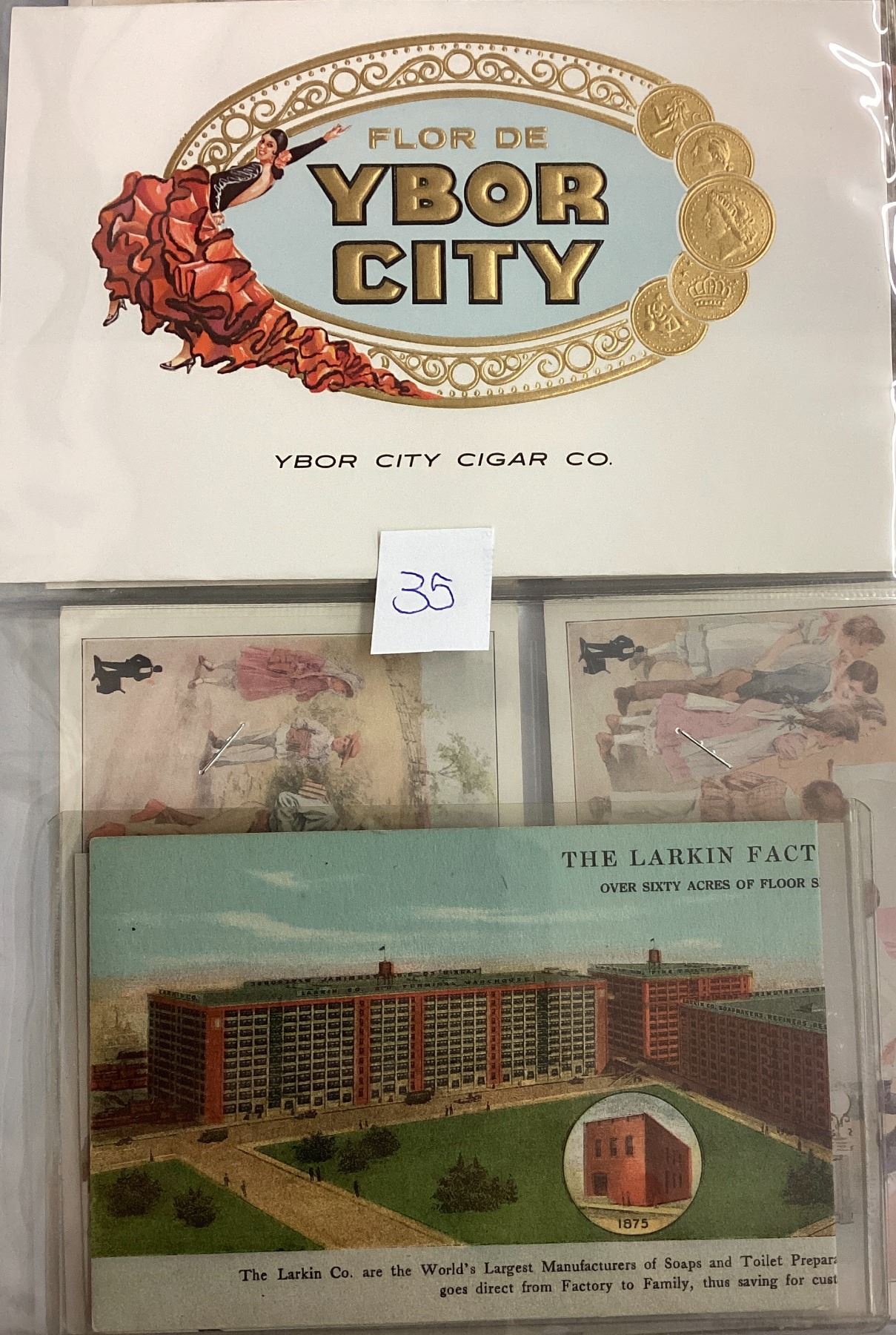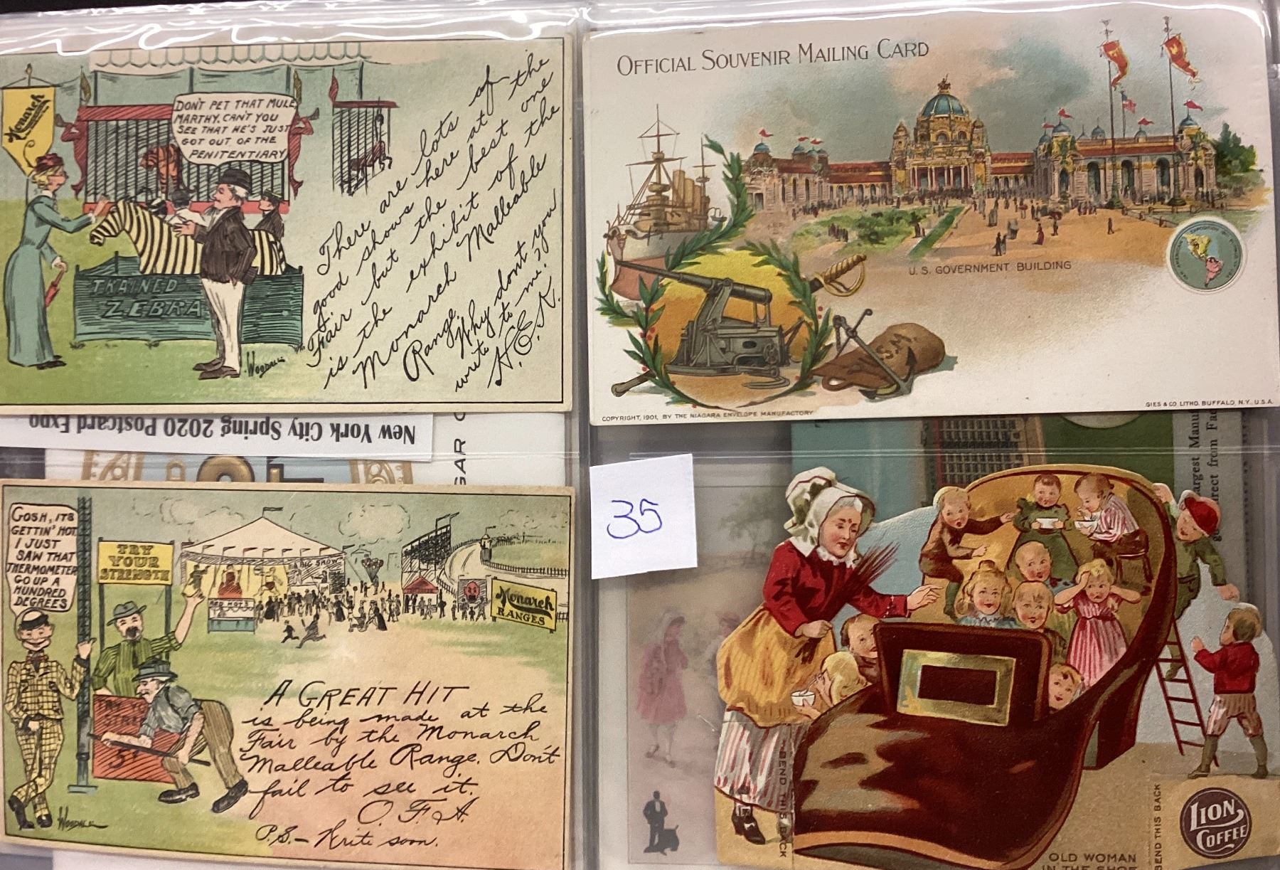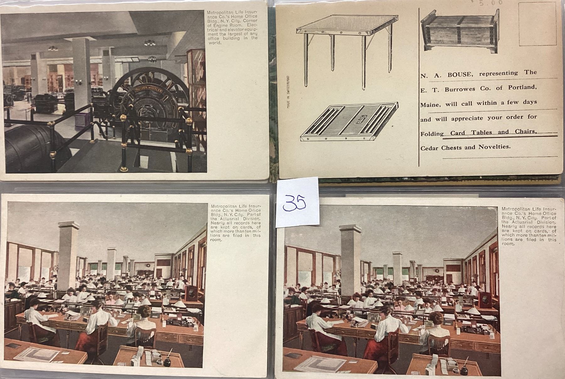 Album of over 100 cards. Mostly postcards, a few trade cards. Early to standard size chrome.