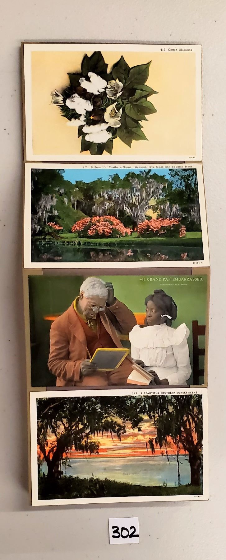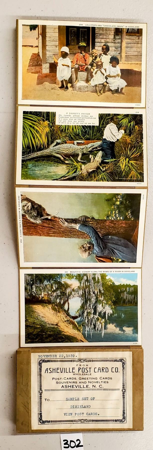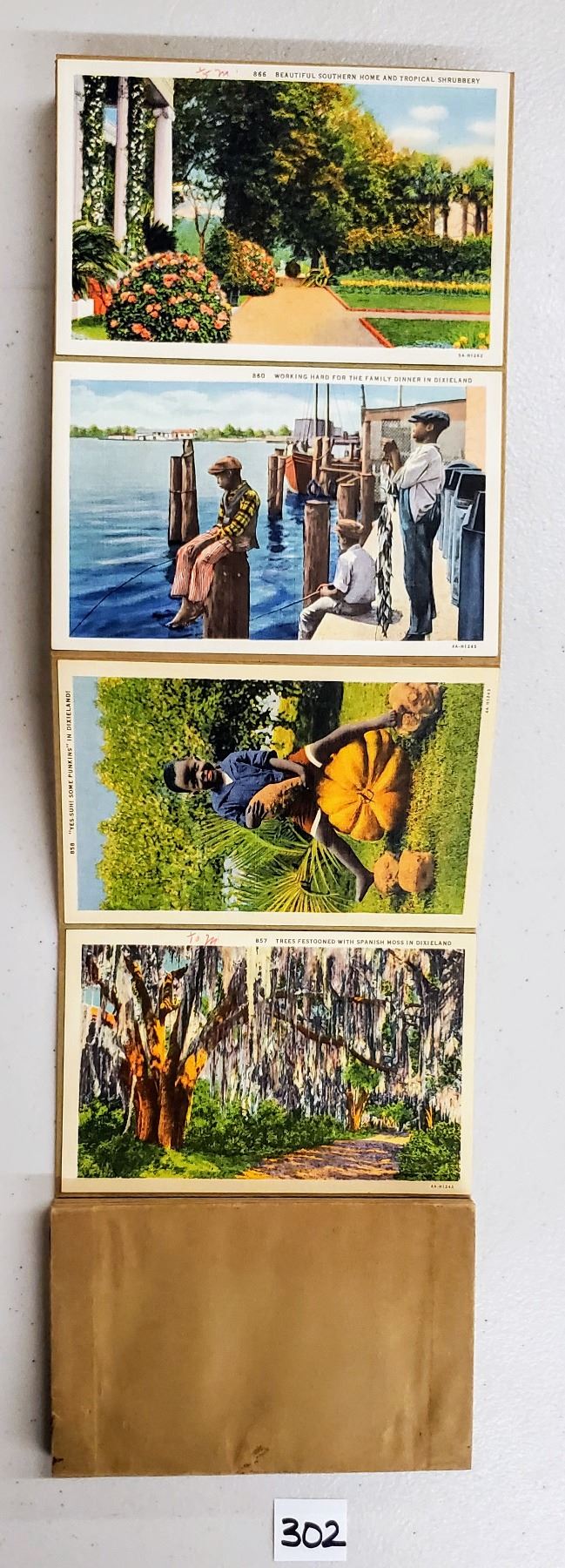 Accordian sales set with the cards attached for sample of the Dixieland View postcards. Approx. 65 cards. Early.