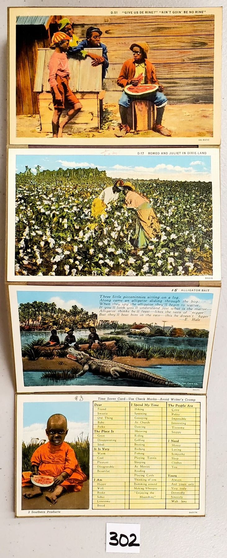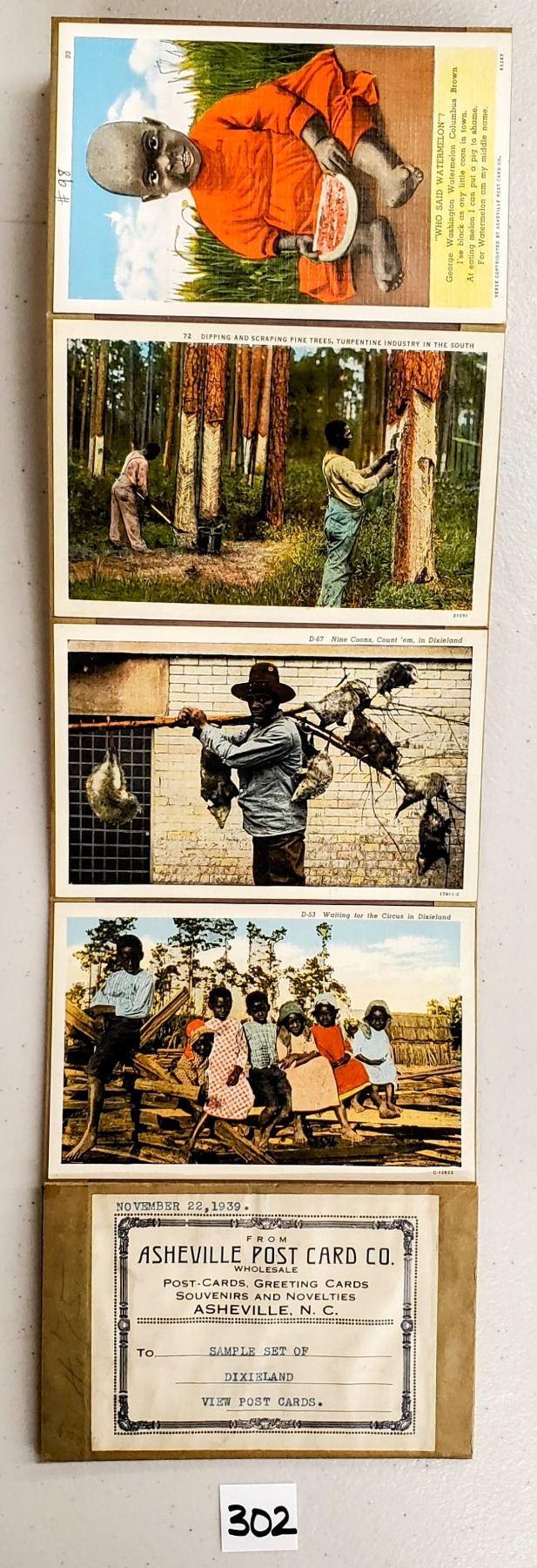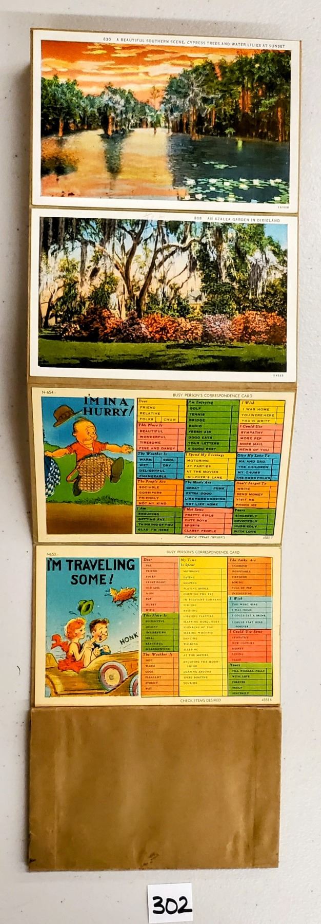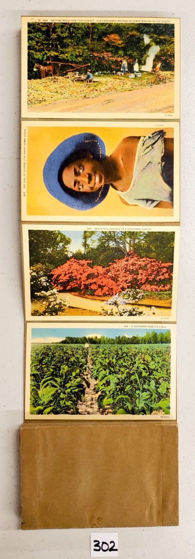 Accordian sales set with the cards attached for sample of the Dixieland View postcards. Approx. 65 cards. Early.