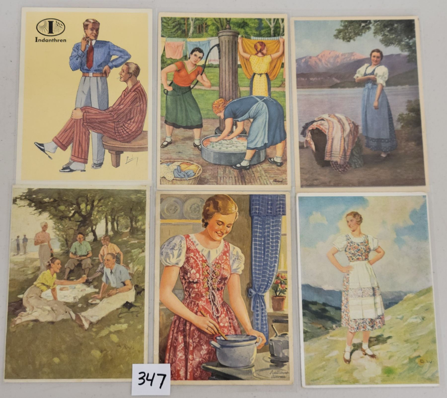 6 vintage continental size Indanthren postcards.