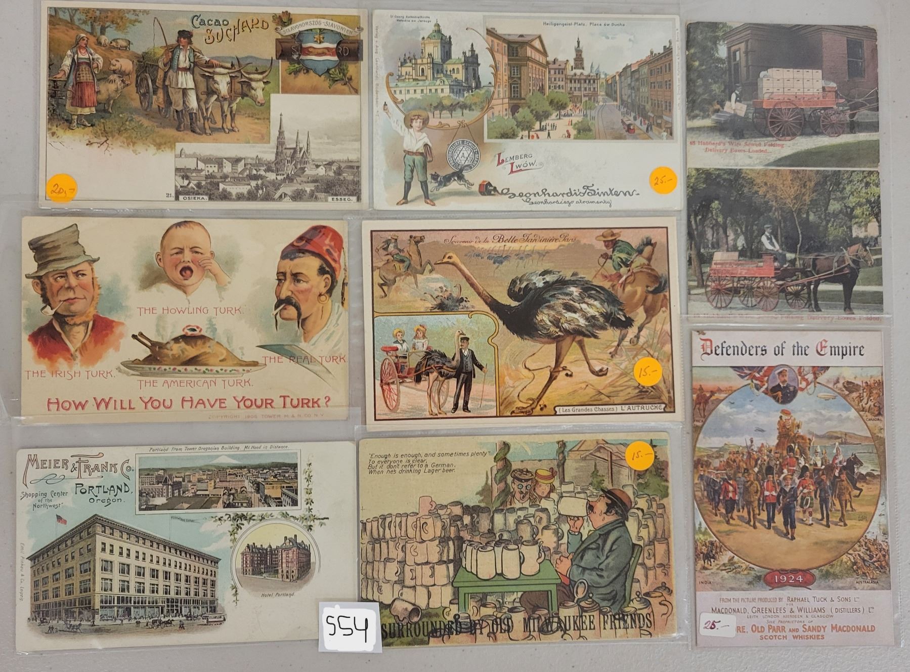 14 Early advertising postcards.