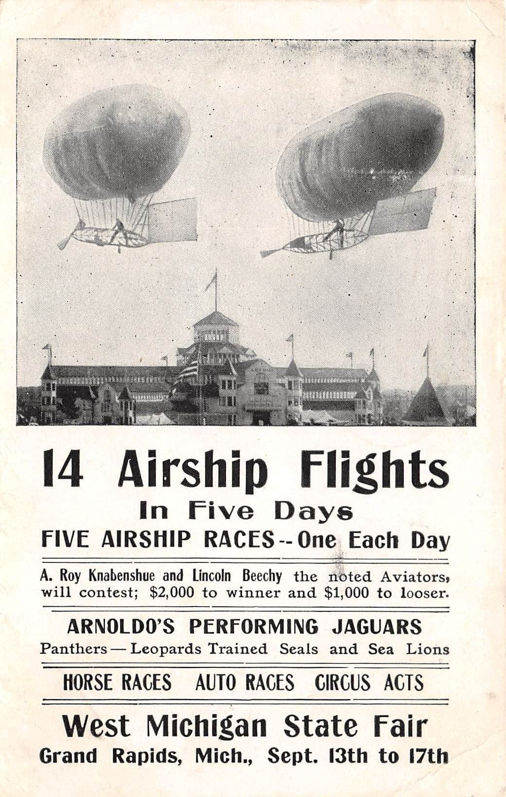 Airship Advertising Flights West Michigan State Fair Grand Rapids postcard. Early. Corner crease lower and upper right.