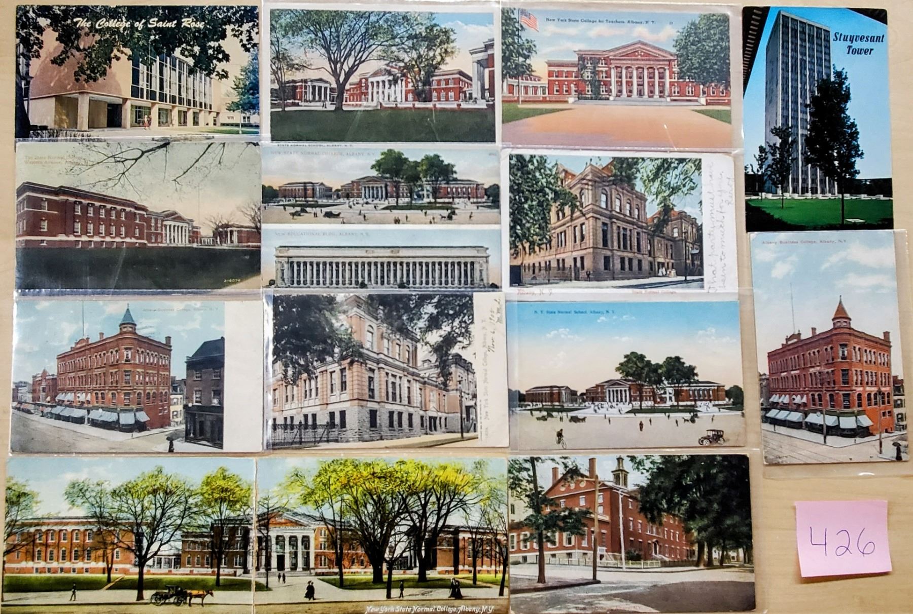 Over 330 Albany postcards. Mostly pre chrome. Sorted. City Hall, College, schools, Halloween, Hospital, train and others.