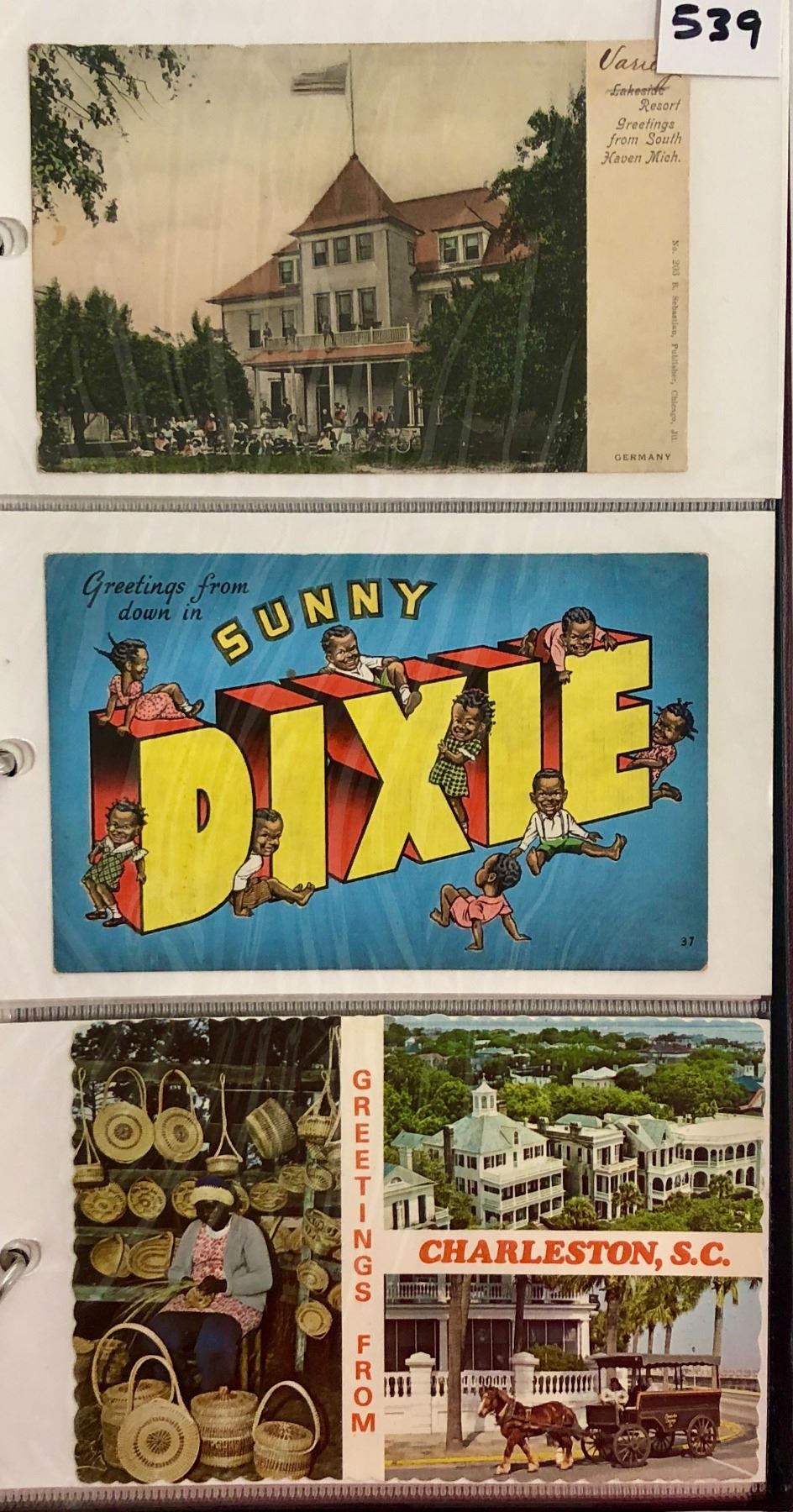 Approx. 135 postcards, a few trade cards. Early to linen. We don't promote but we do recognize the marginalization of many ethnic groups. We encourage bidders to recognize the value and cultural significance of these items, and to participate in a spirit of inclusiveness and mutual respect.
