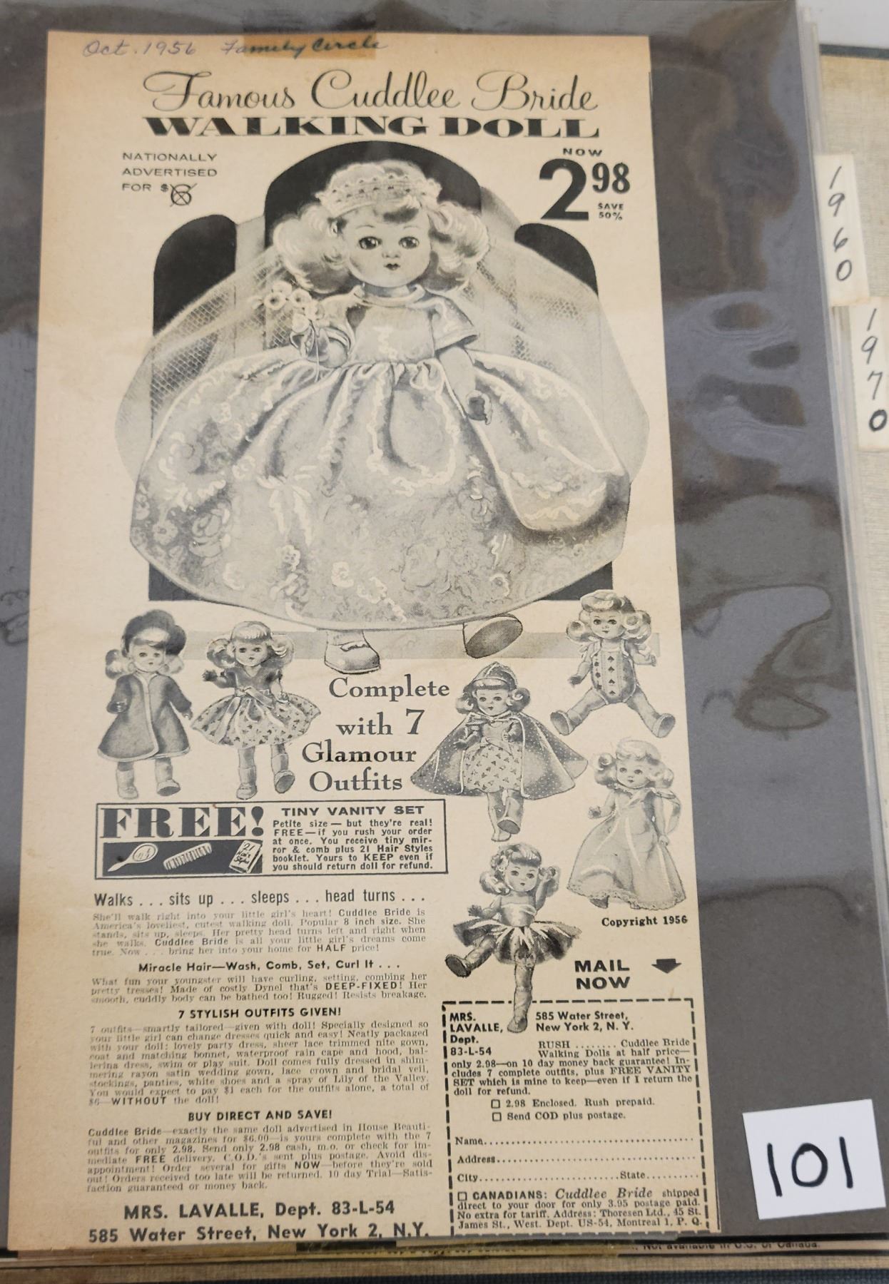 Approx. 170 clippings & cut outs of dolls. Fifties to seventies.