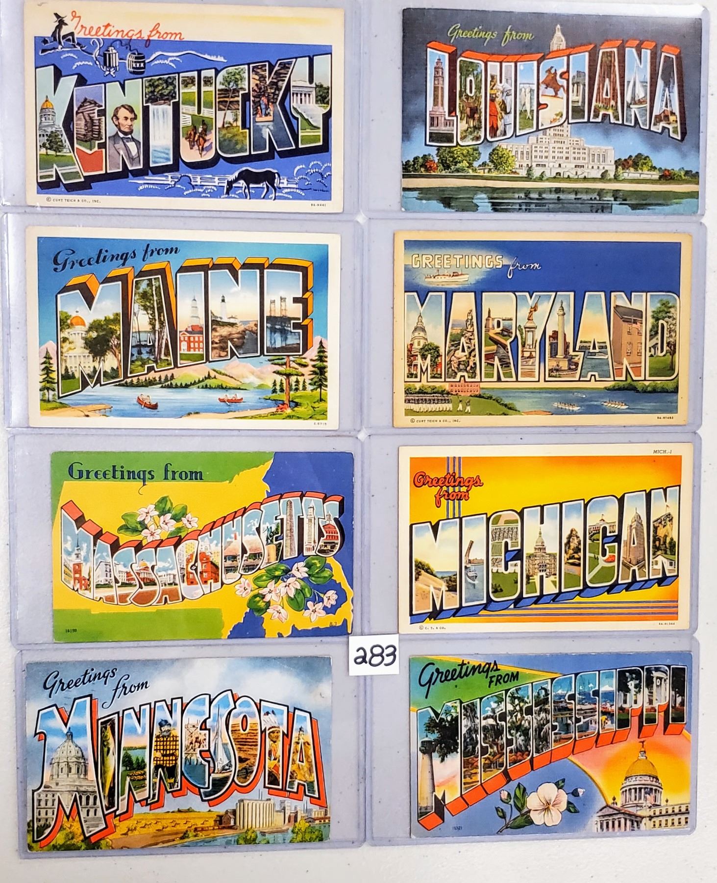 Over 50 Large letter linen postcards. One from every state. A few standard size chrome.