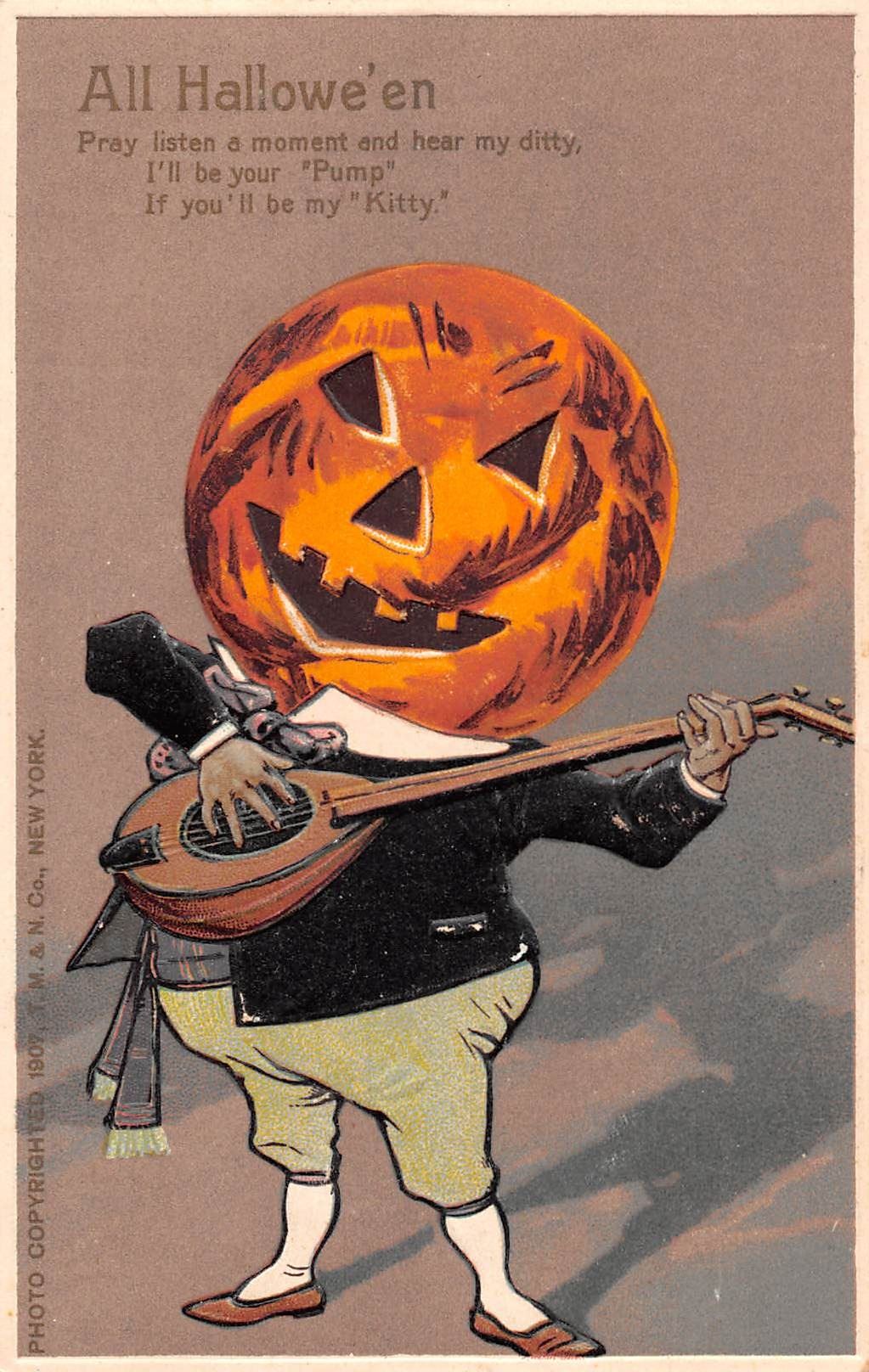 All Halloween Pumpkin Head Playing Guitar Holiday Greeting Postcard