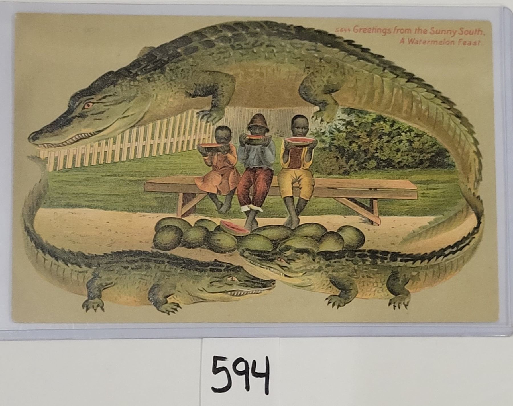 Alligator Border #644 Greetings from the Sunny South A Watermelon Feast Black Americana Postcard