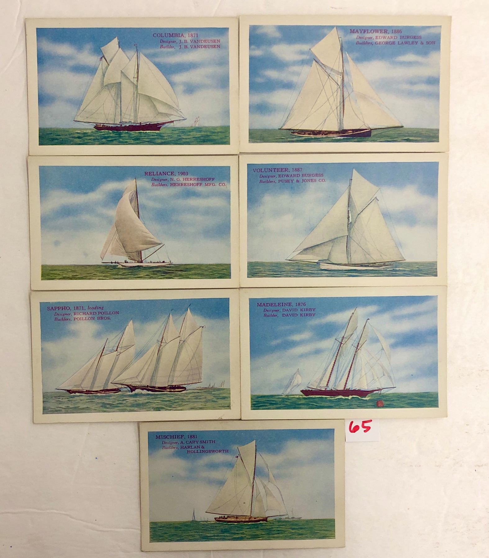 7 early American's Cup Sailboat postcards. Edward Smith & Co. Long Island City advertising on the back.