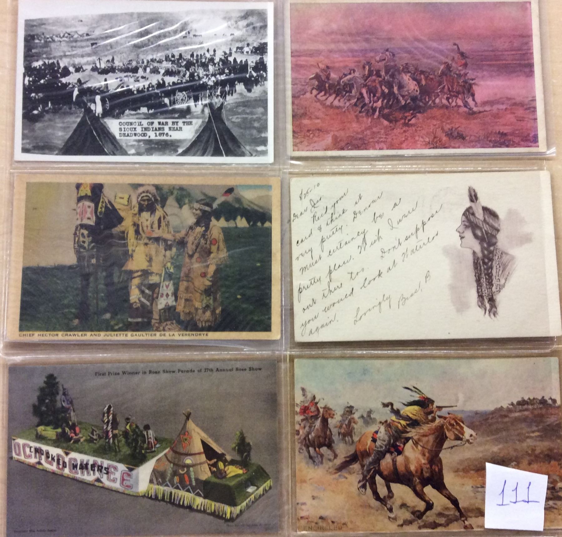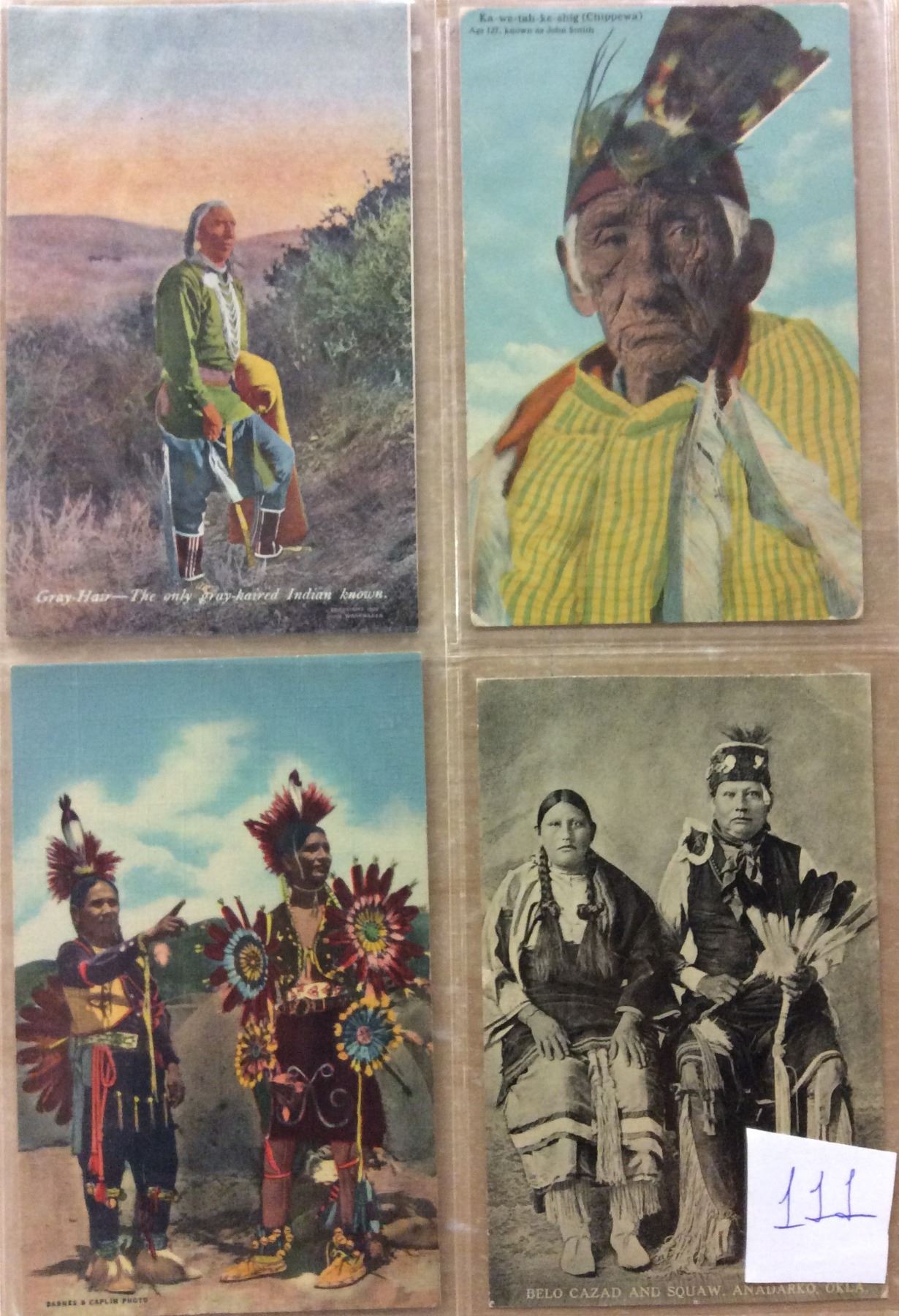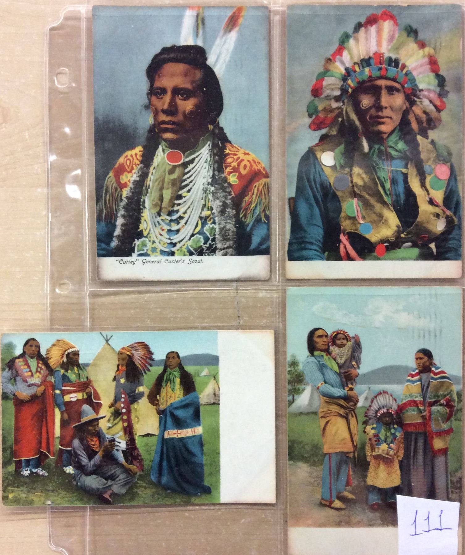 Album of 70 American Indian postcards. Early. Tucks, greetings, chiefs, etc. Pictures shown are just a portion of the lot.