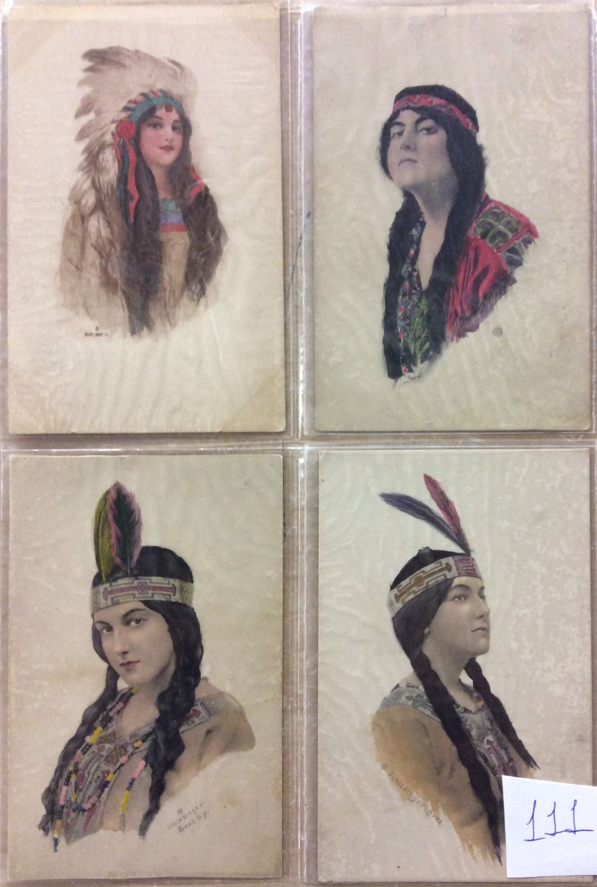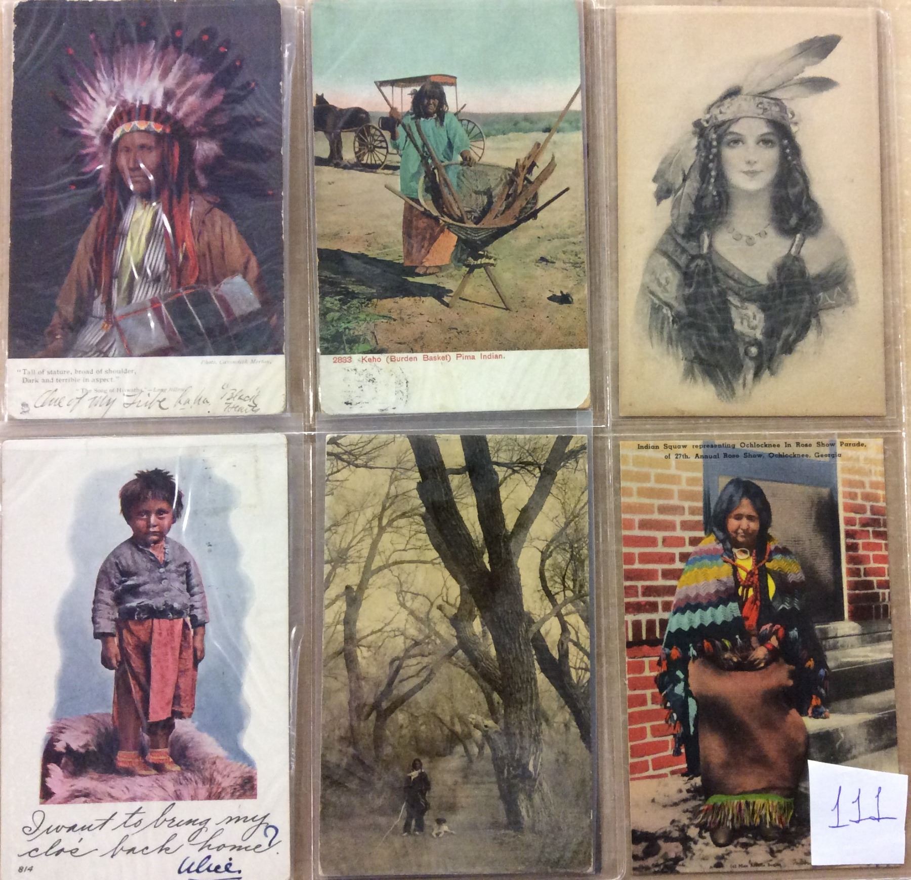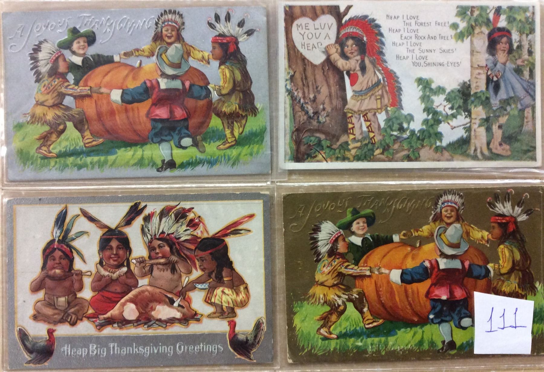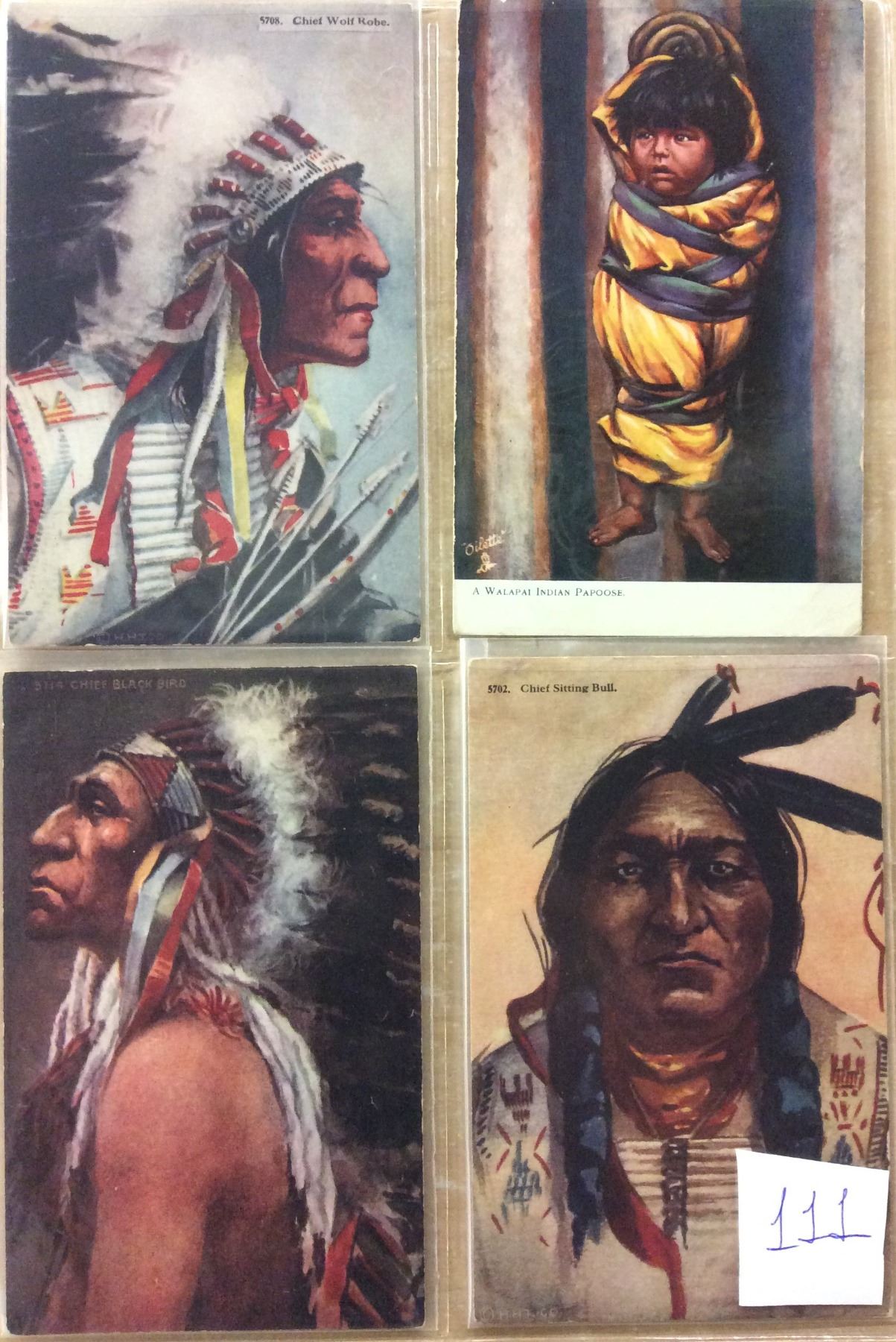 Album of 70 American Indian postcards. Early. Tucks, greetings, chiefs, etc. Pictures shown are just a portion of the lot.