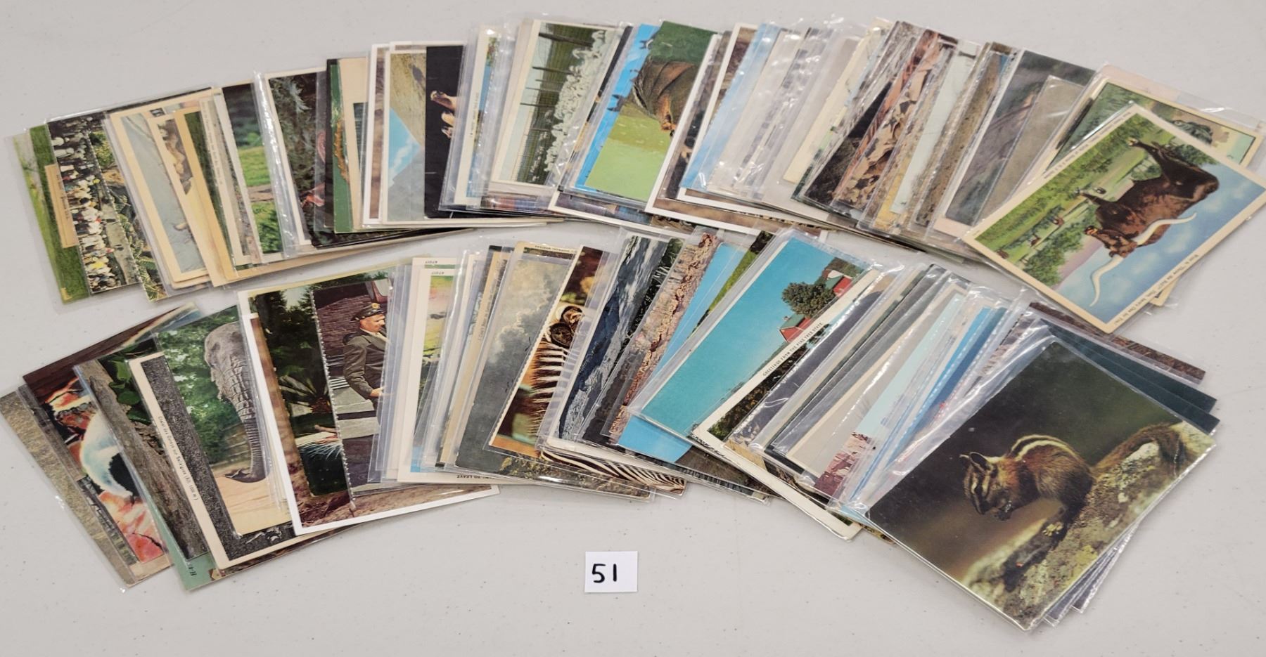 Approx. 160 postcards of animals. Early to standard size chrome.