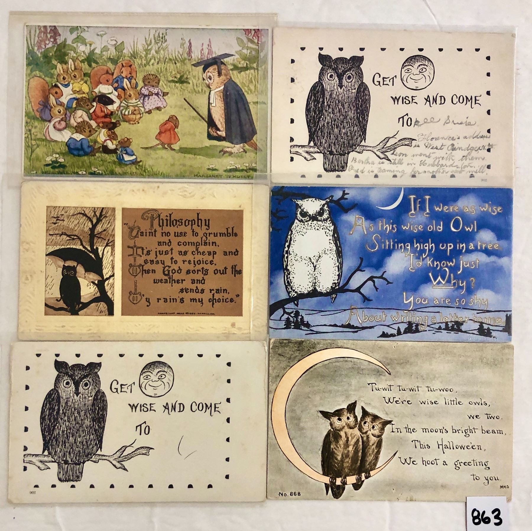 26 early owl postcards.