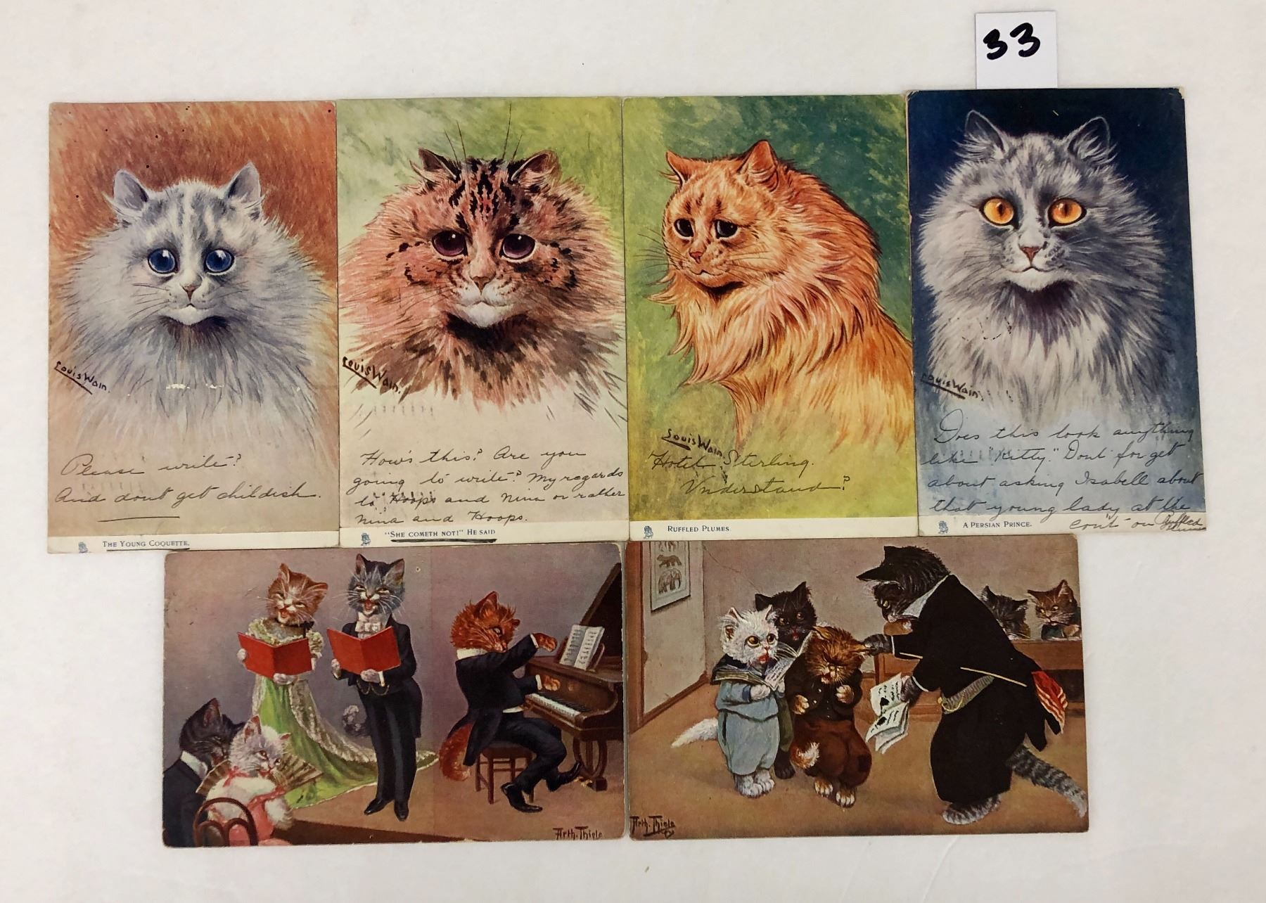 6 early Wain & Thiele Cat postcards.