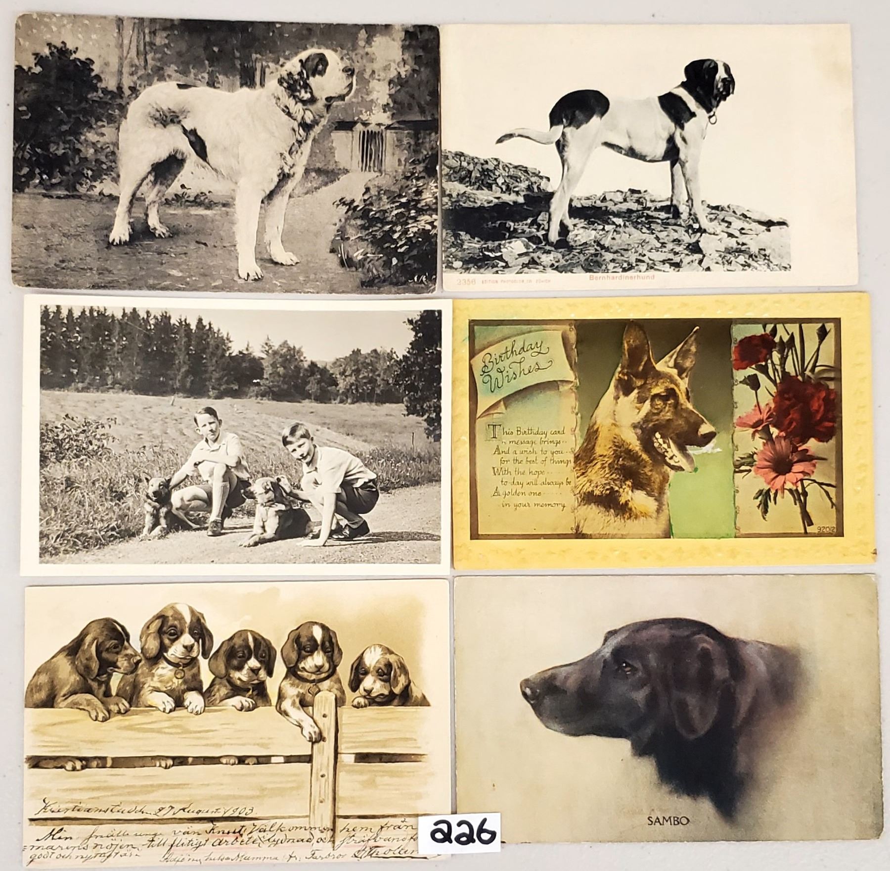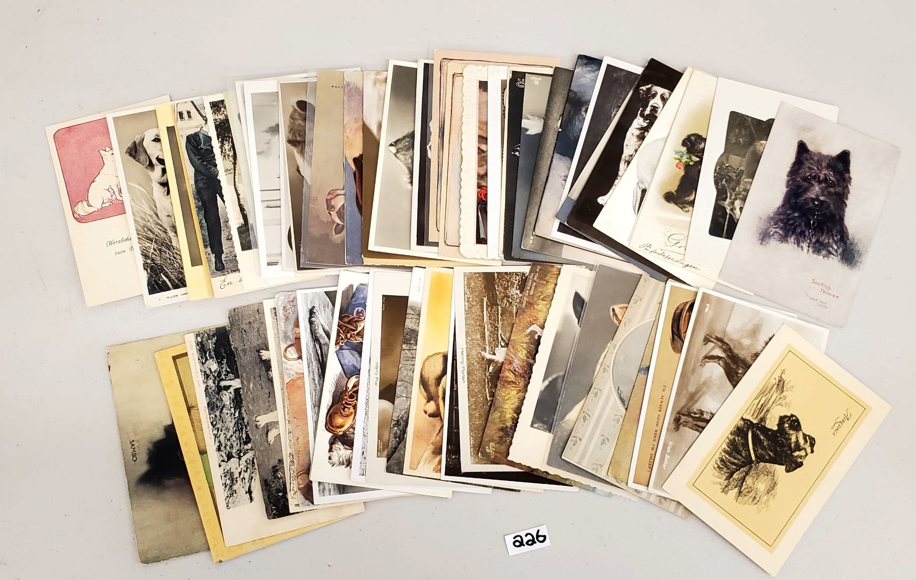 60 dog postcards. Early. Many real photo.