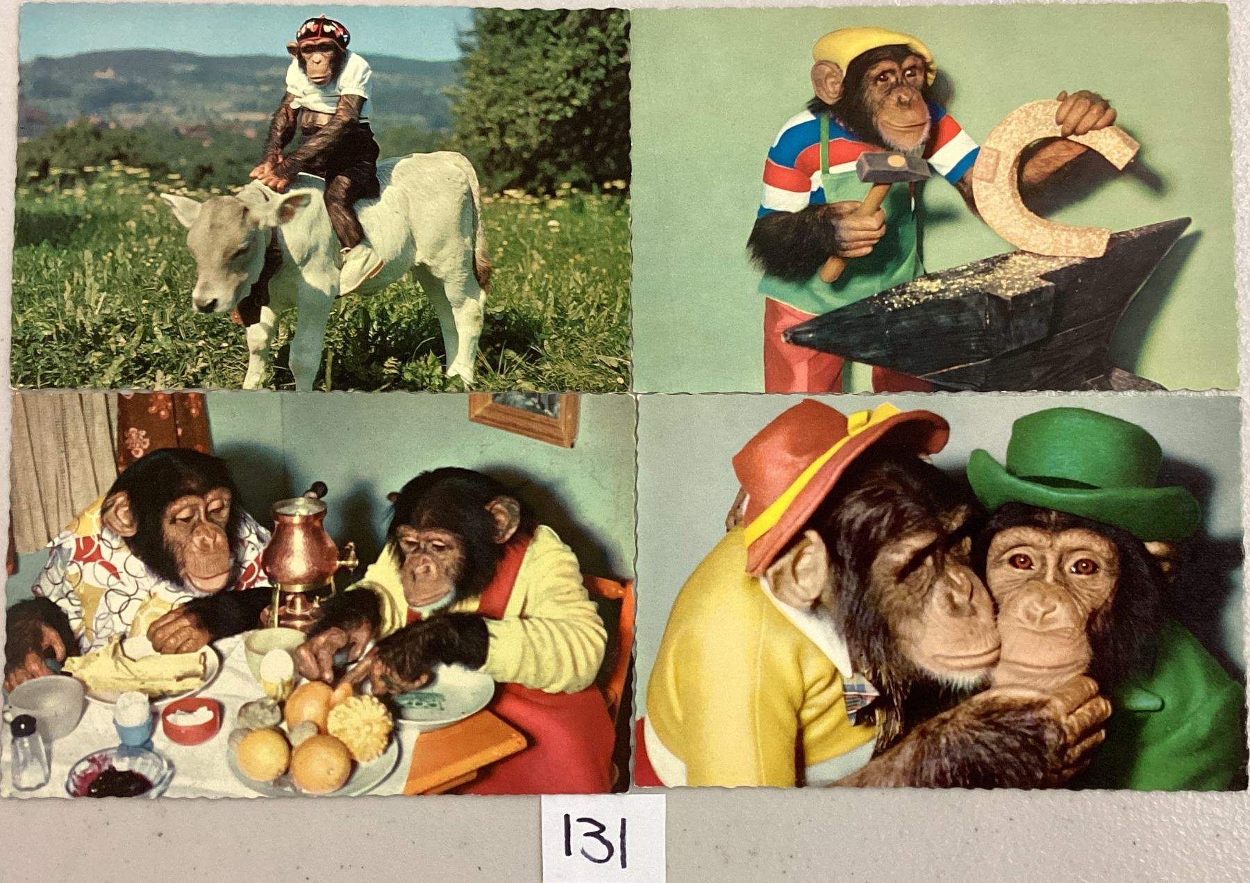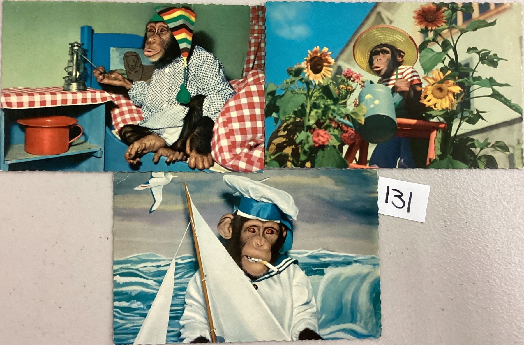 13 dressed Chimpanzee postcards. Standard size chrome.