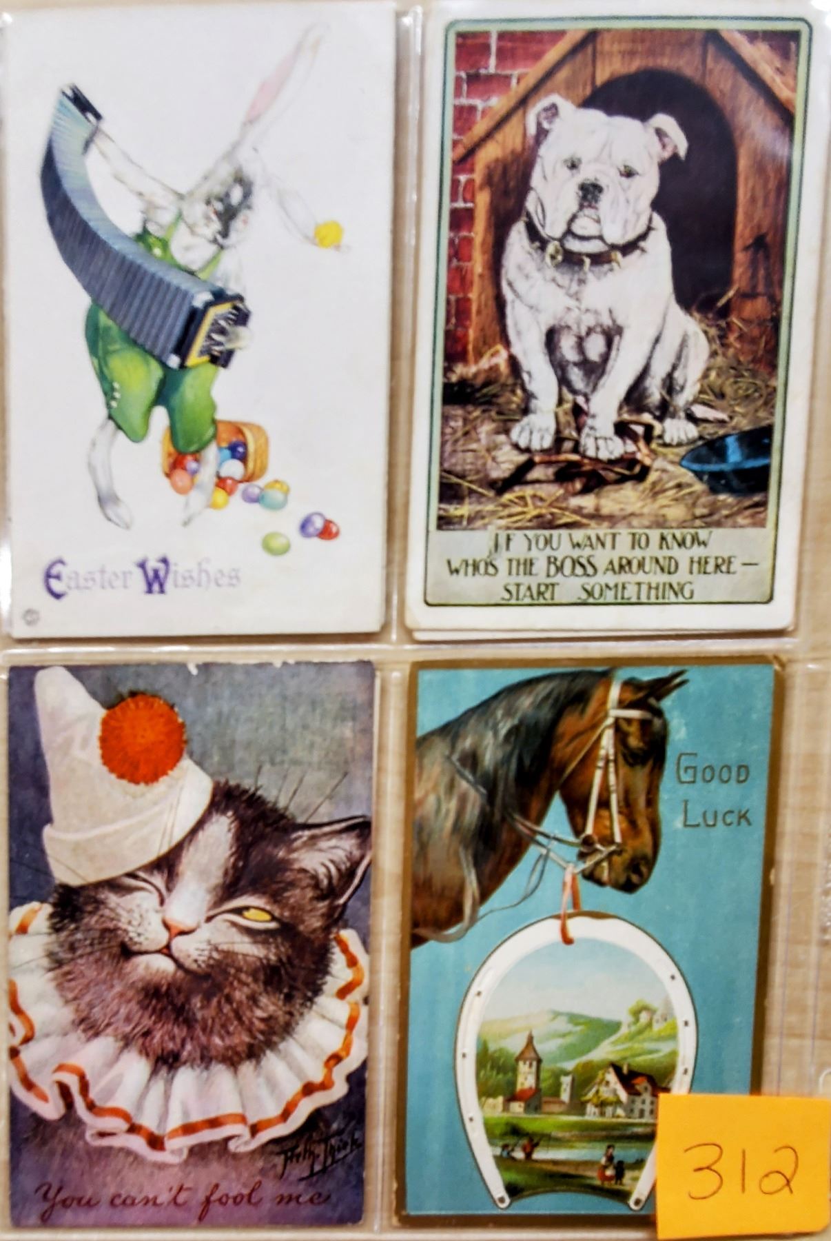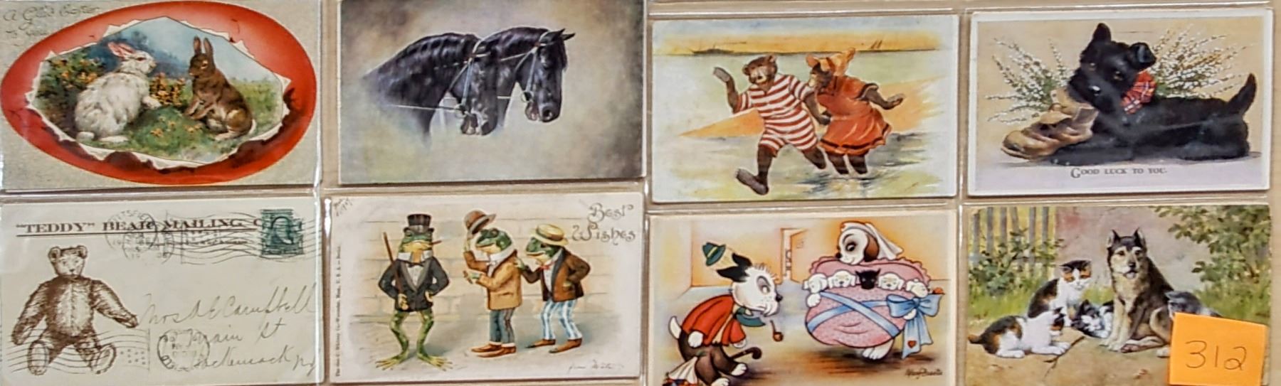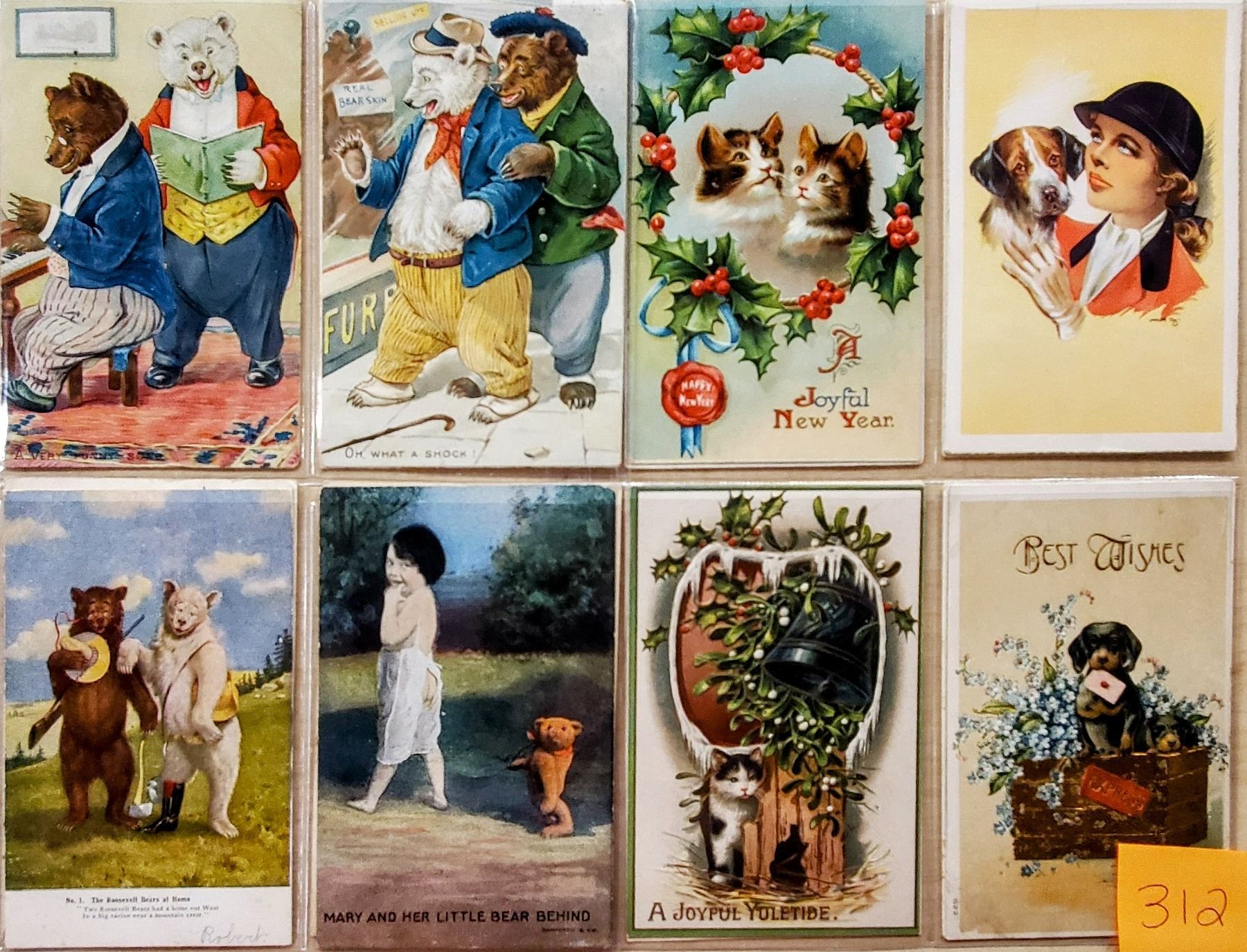 Over 45 cards of cats, dogs, horses, bears, etc. Some dressed animals and artists.
