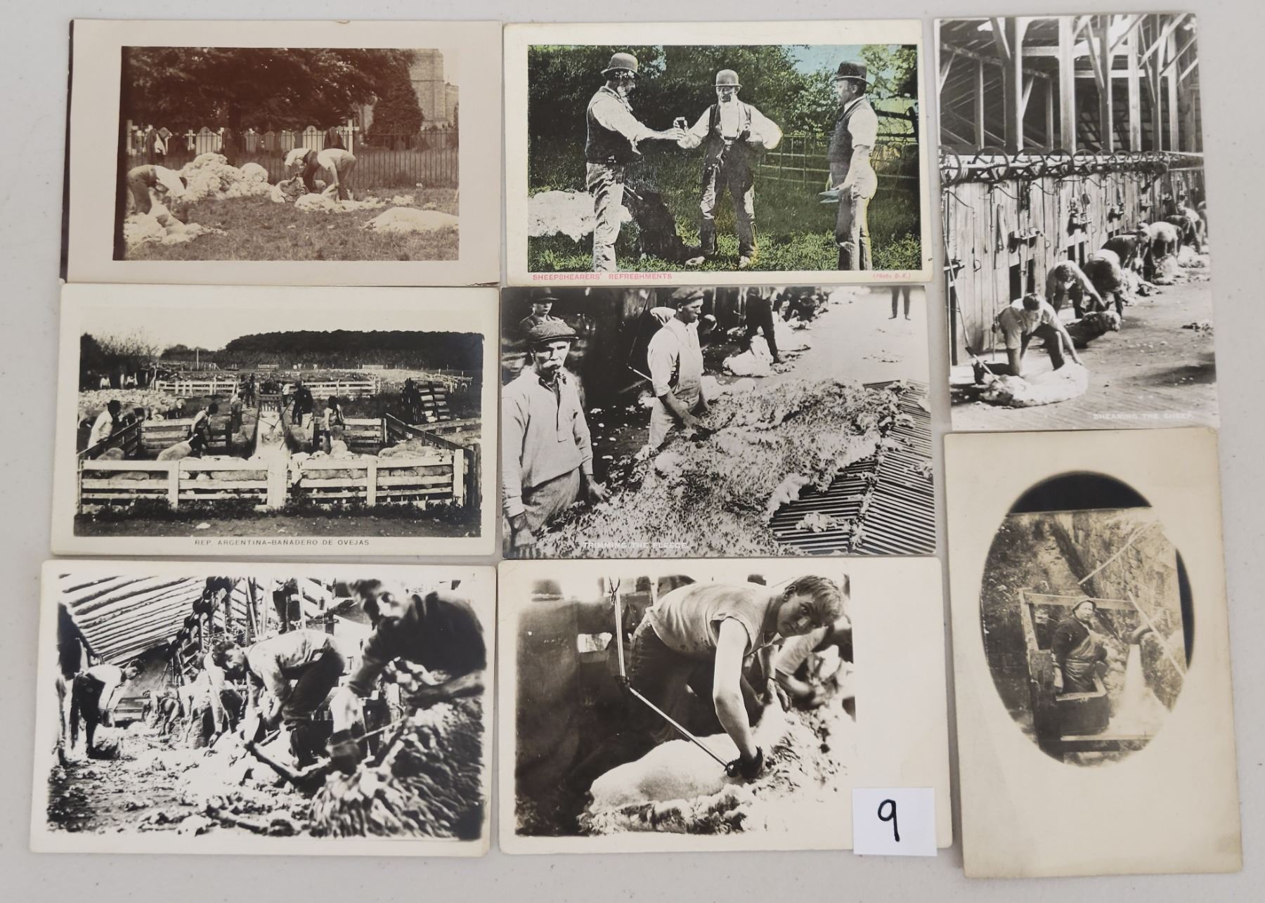 15 postcards of sheering sheep. Early & real photo.