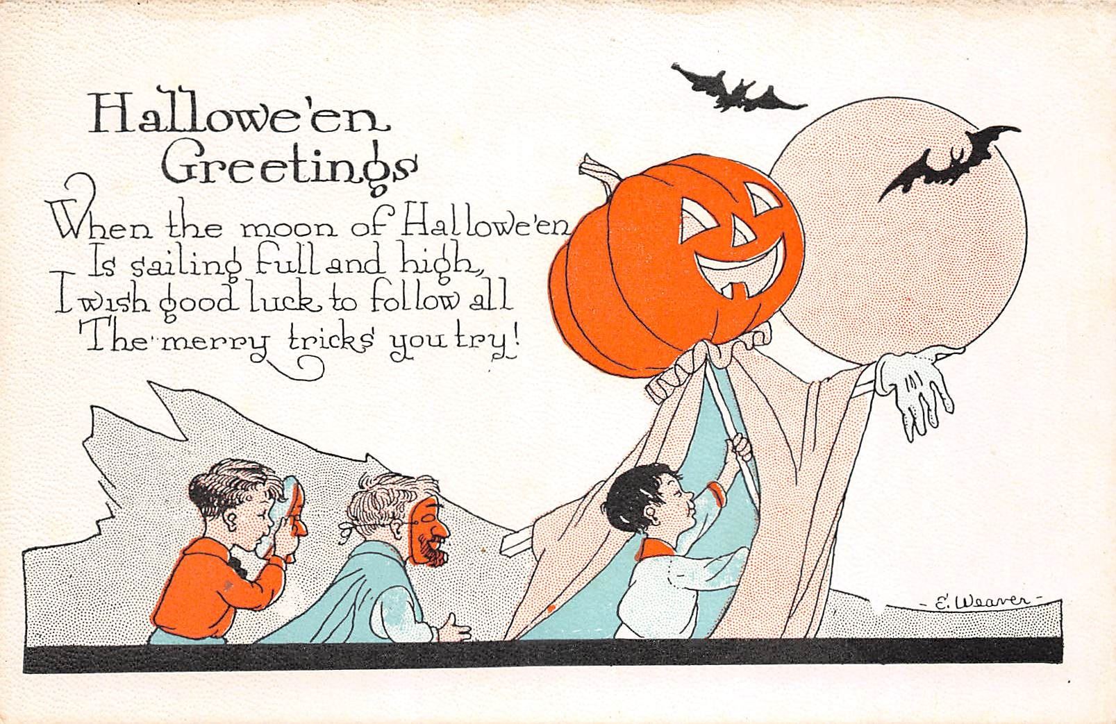Auburn Weaver Children & Pumpkin Halloween Holiday Greeting Postcard
