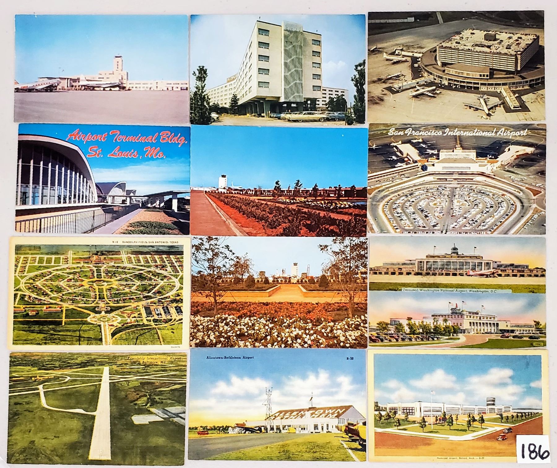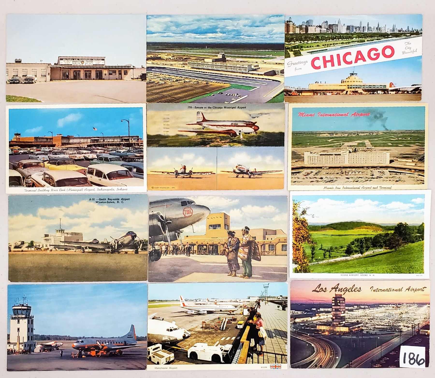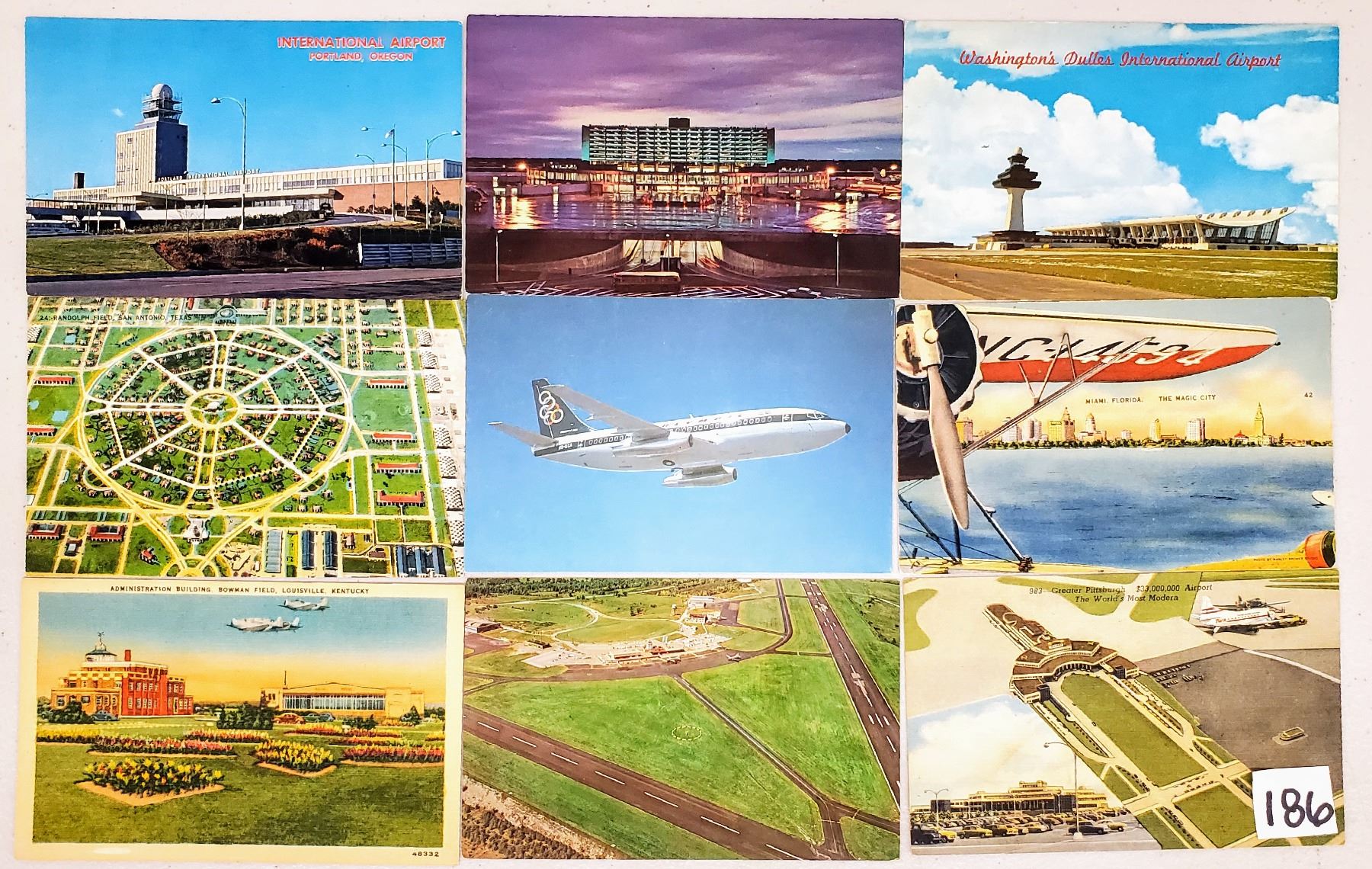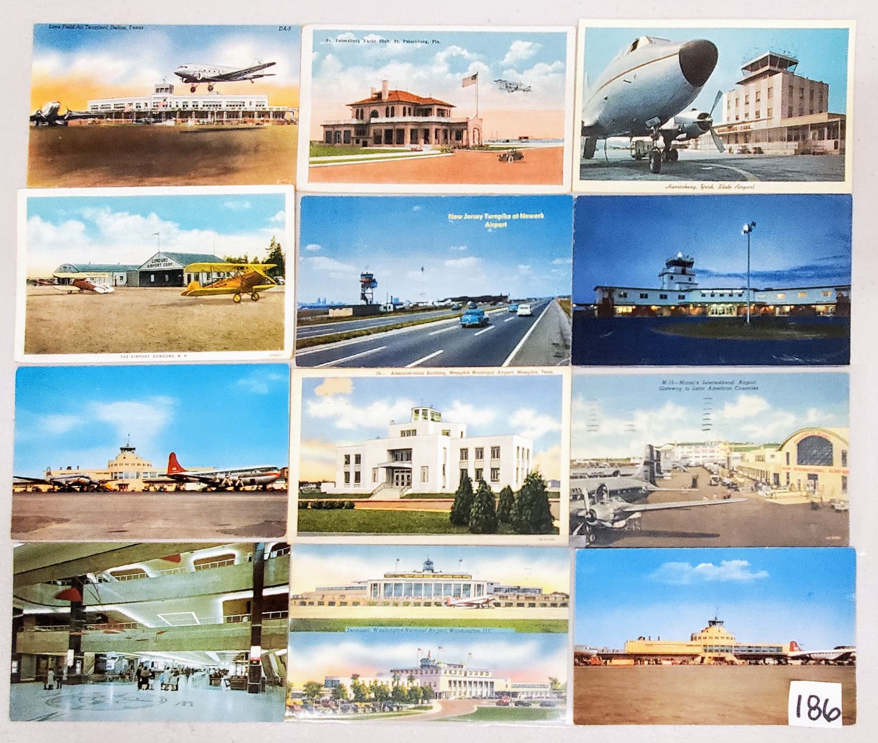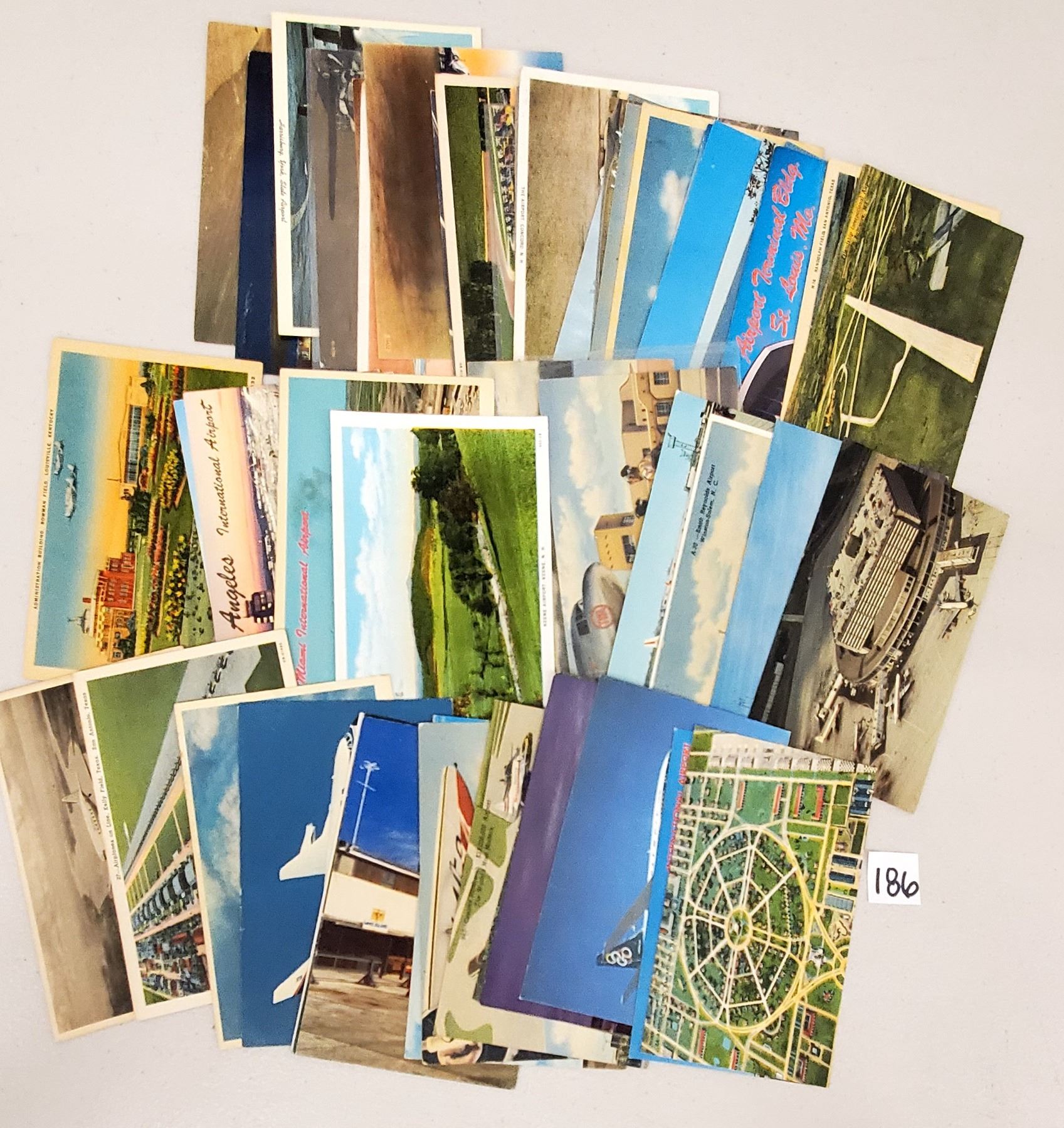 Over 50 airport postcards. Linen to standard size chrome.