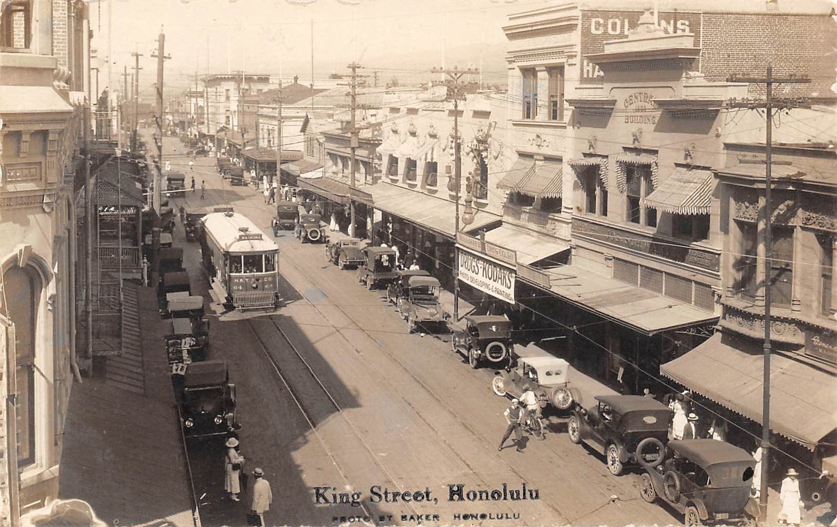 Baker Real Photo King Street, Honolulu Trolley Scene Postcard