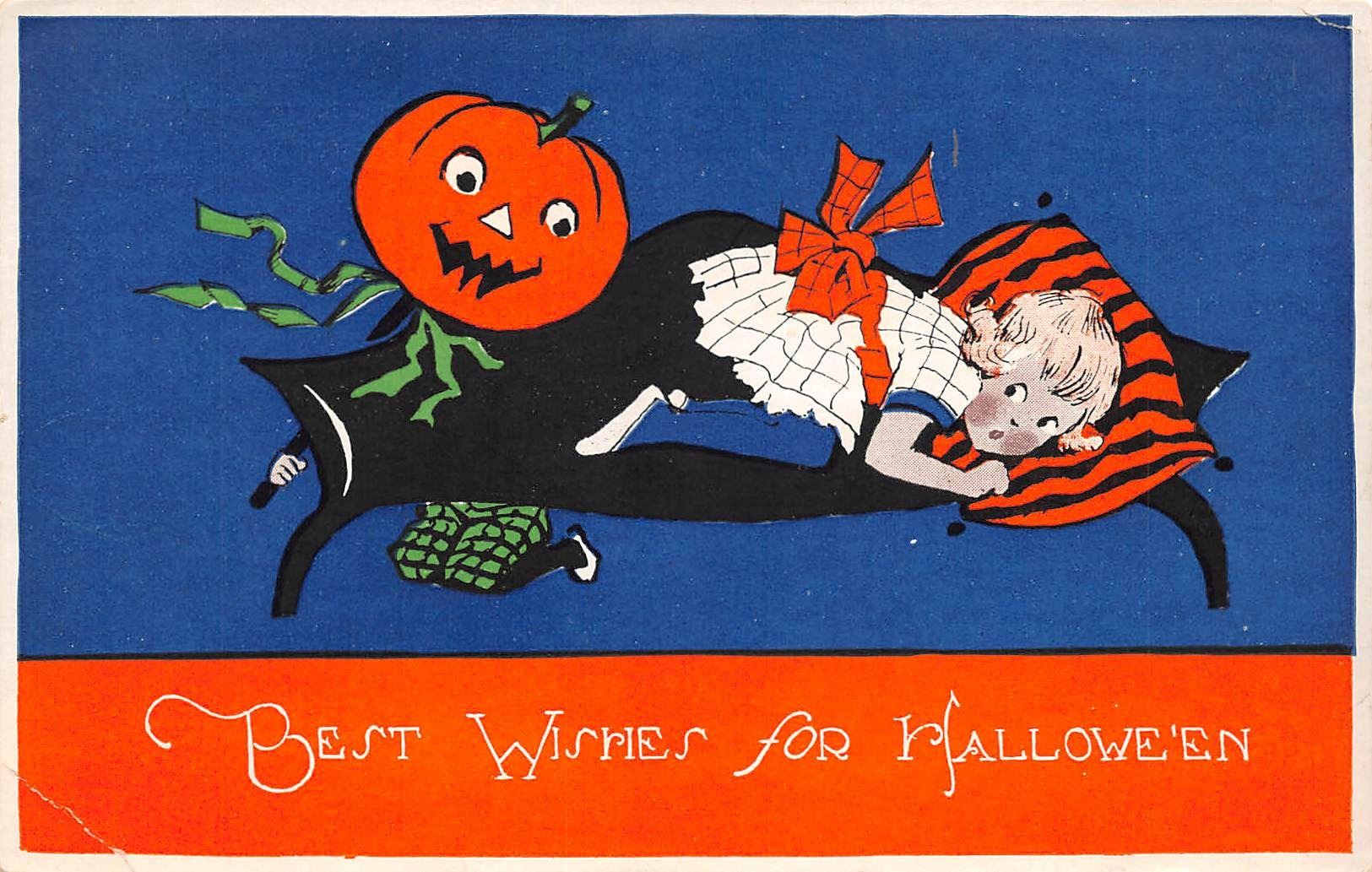 Best Wishes for Halloween Gibson Jack-o-lantern & Girl Holiday Greeting PC