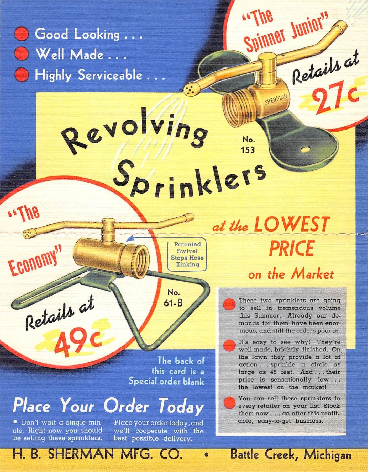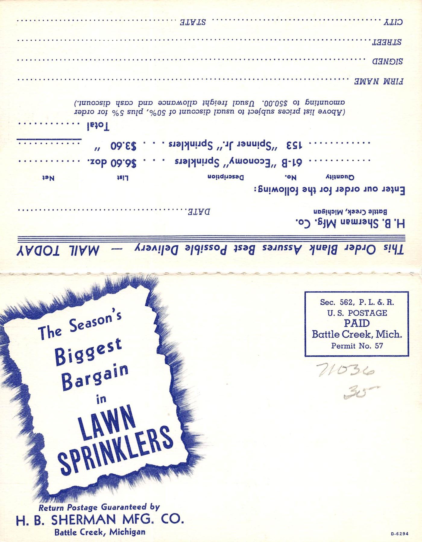 Bifold Linen Advertising Lawn Sprinkler Postcard
