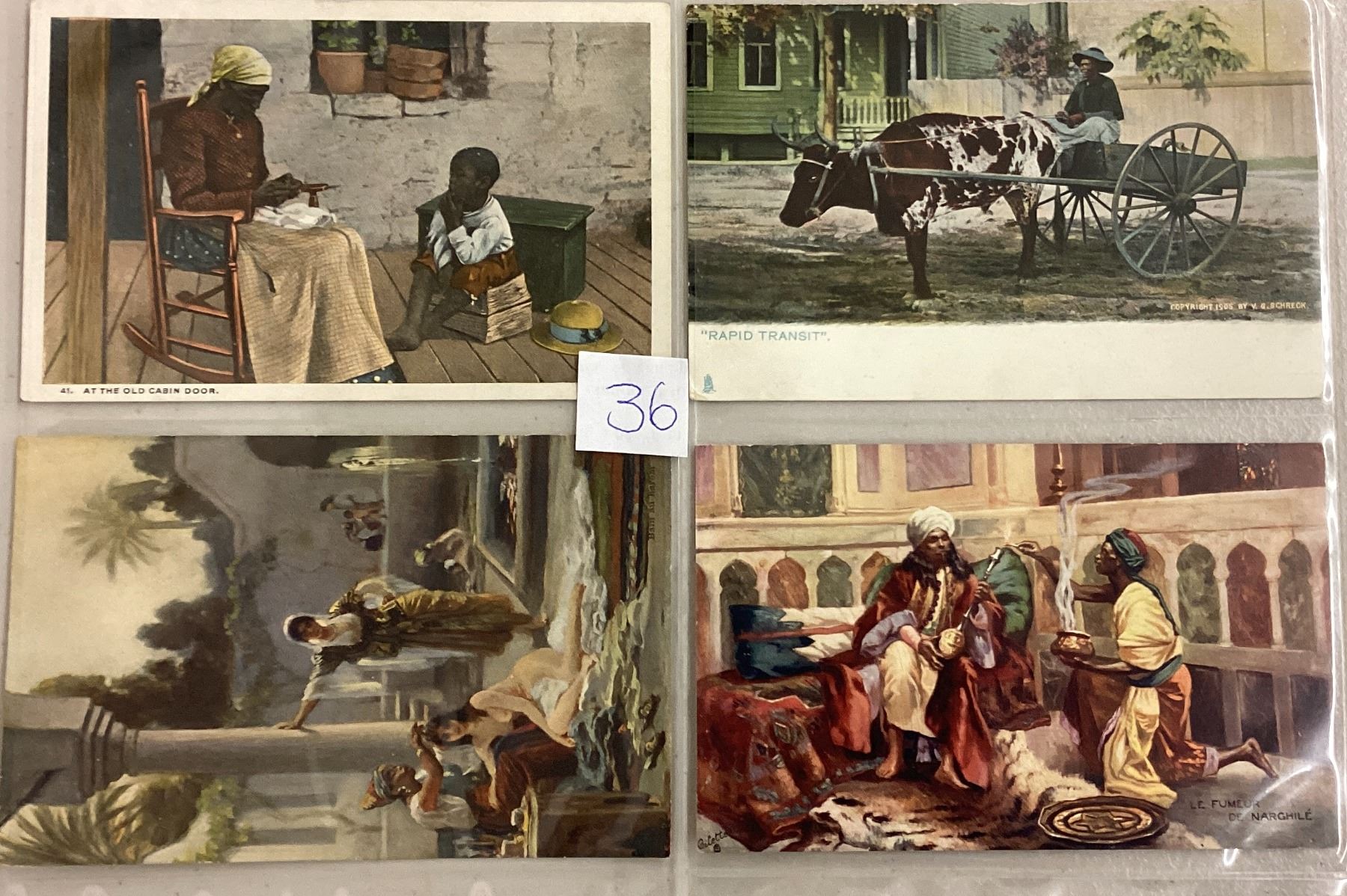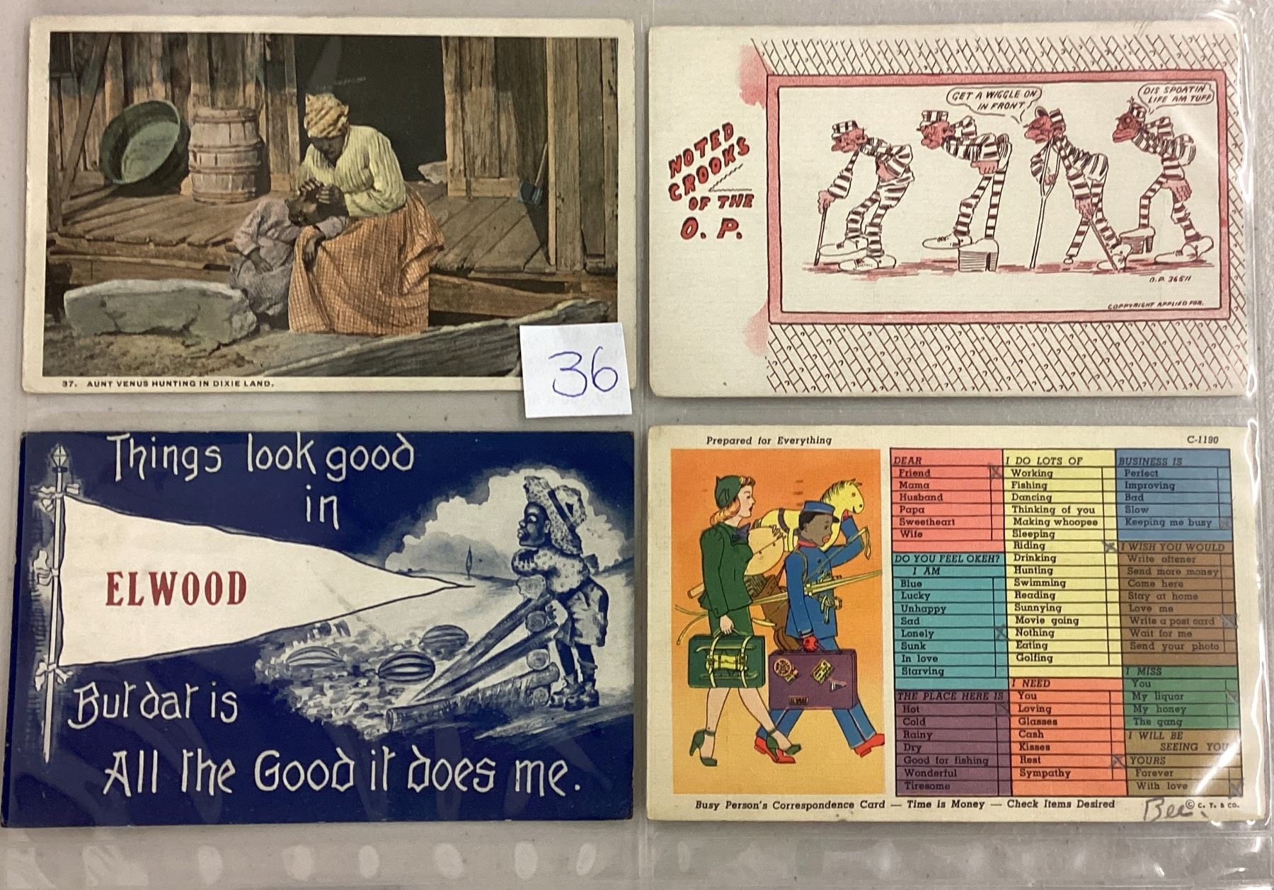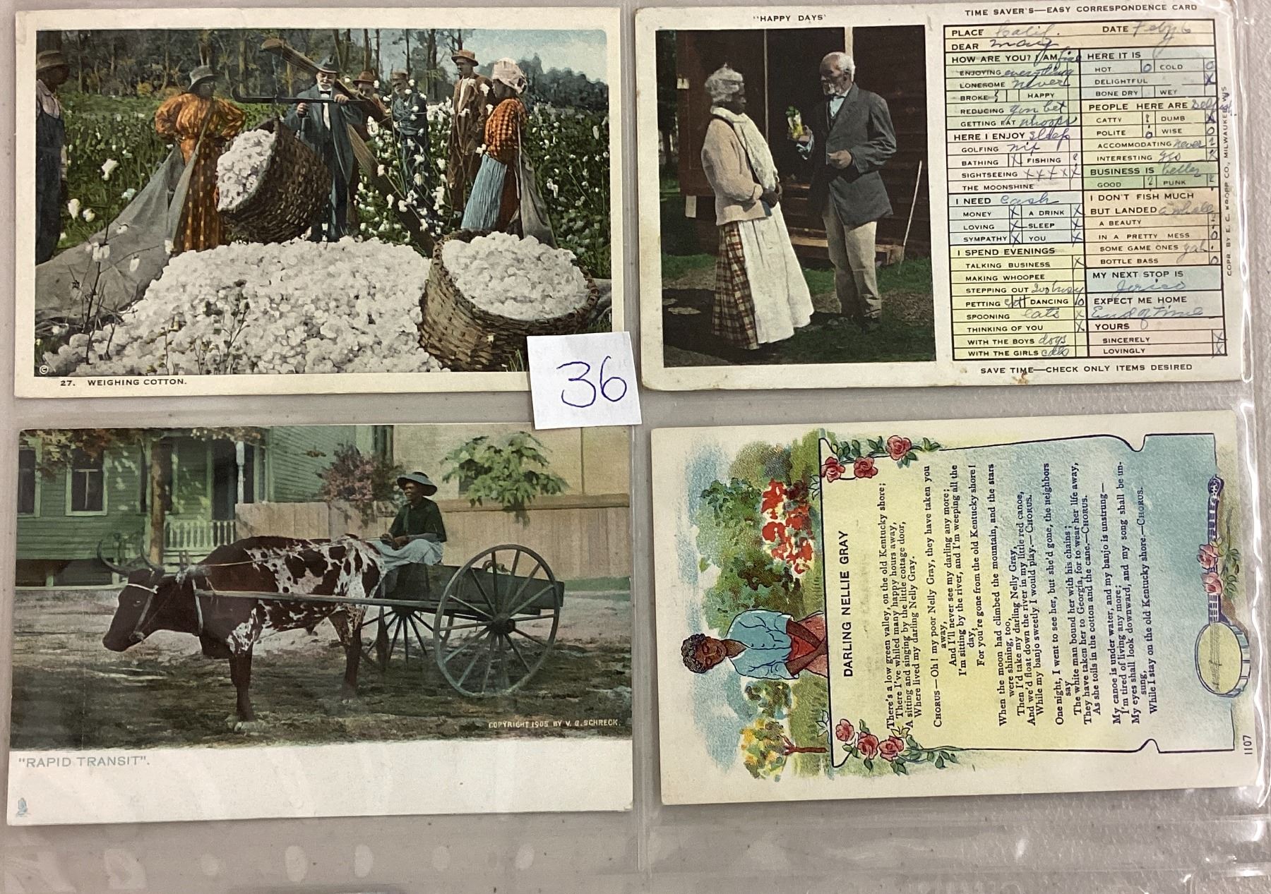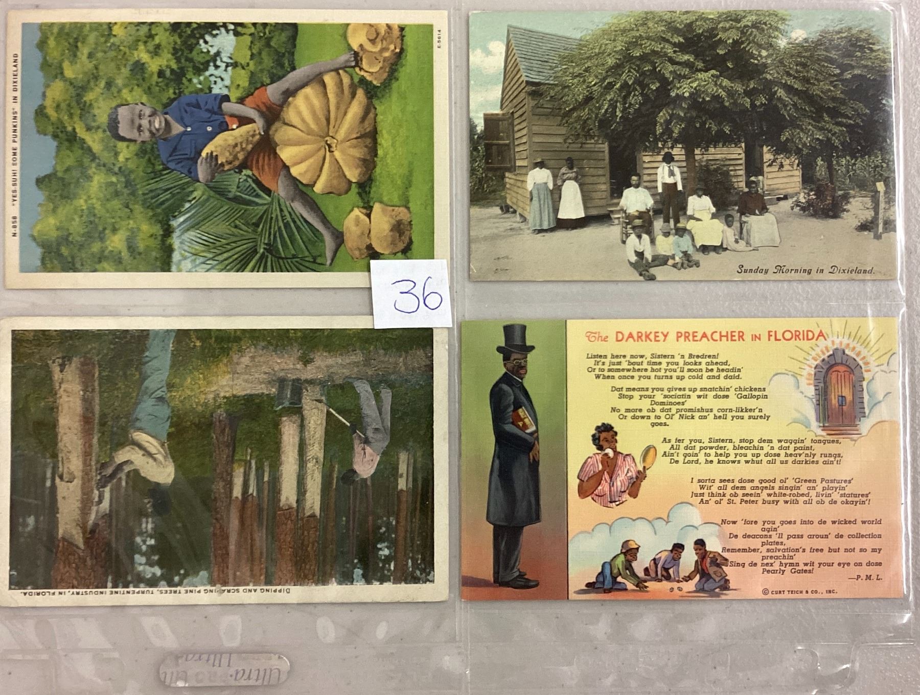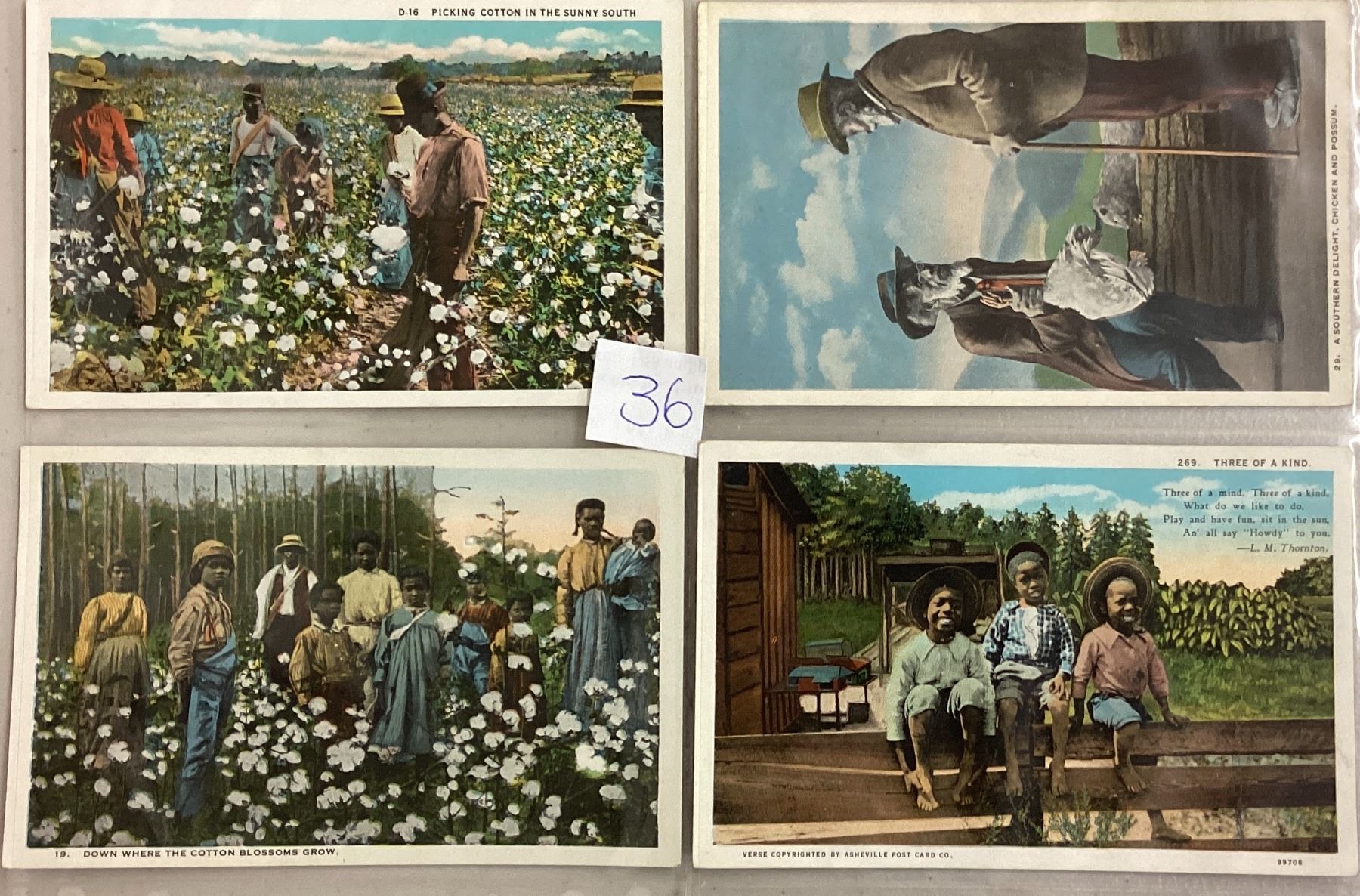 Album of over 50 Black Americana postcards. Early to linen. Some Tucks.
