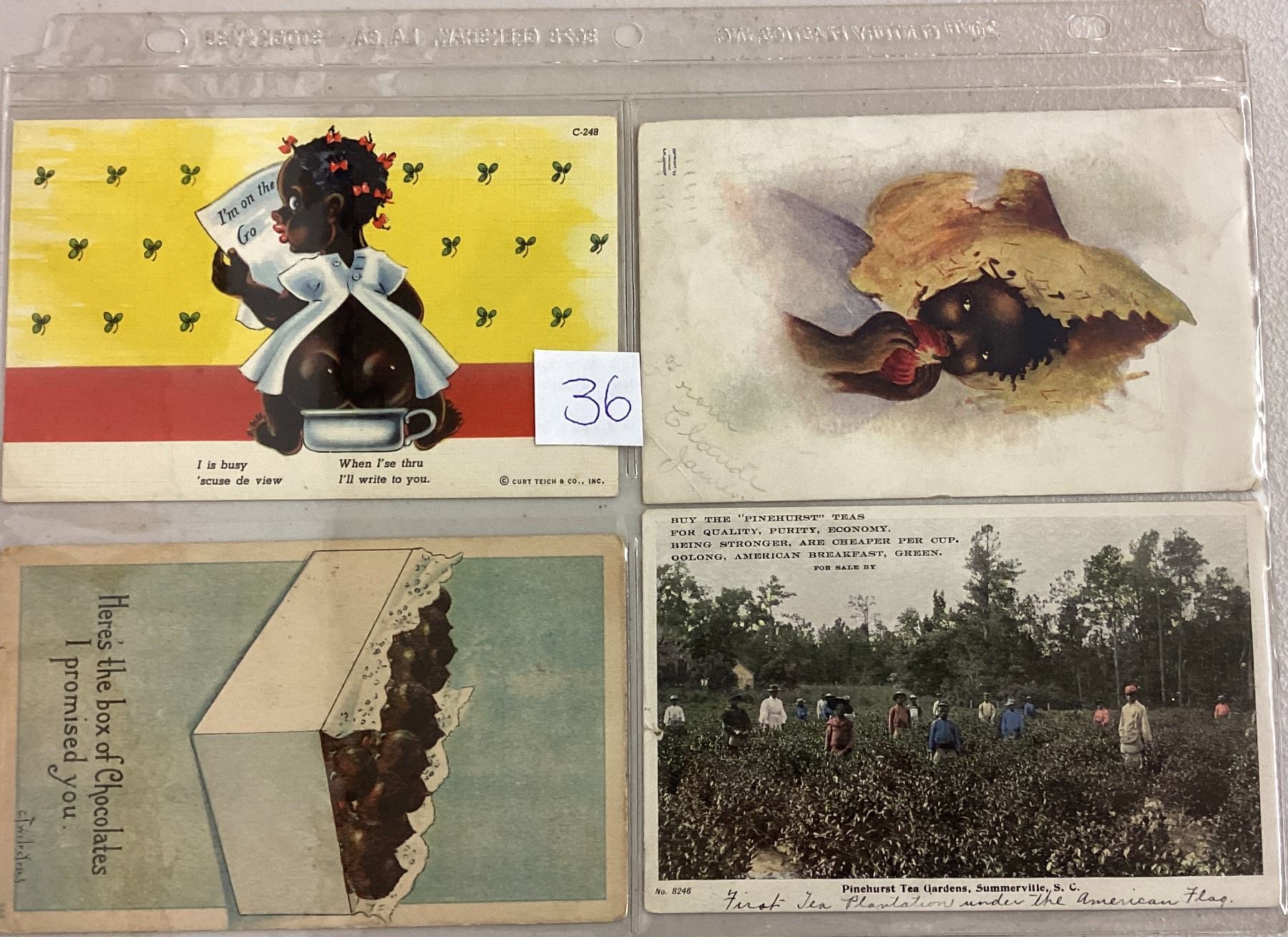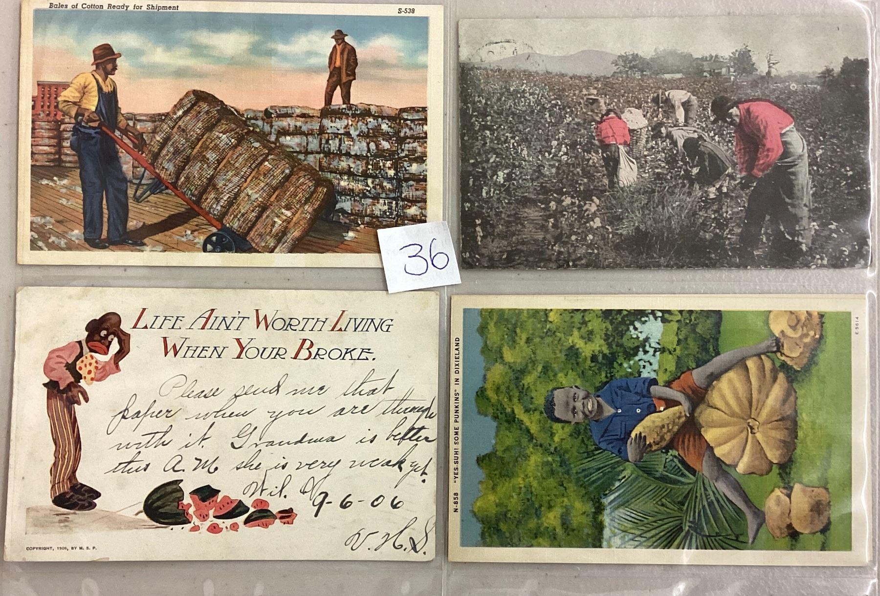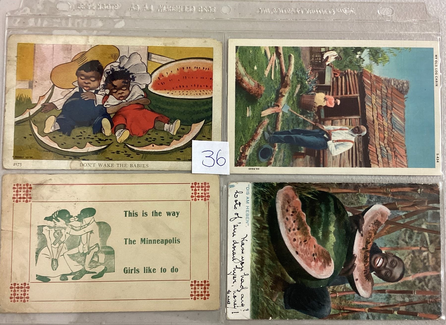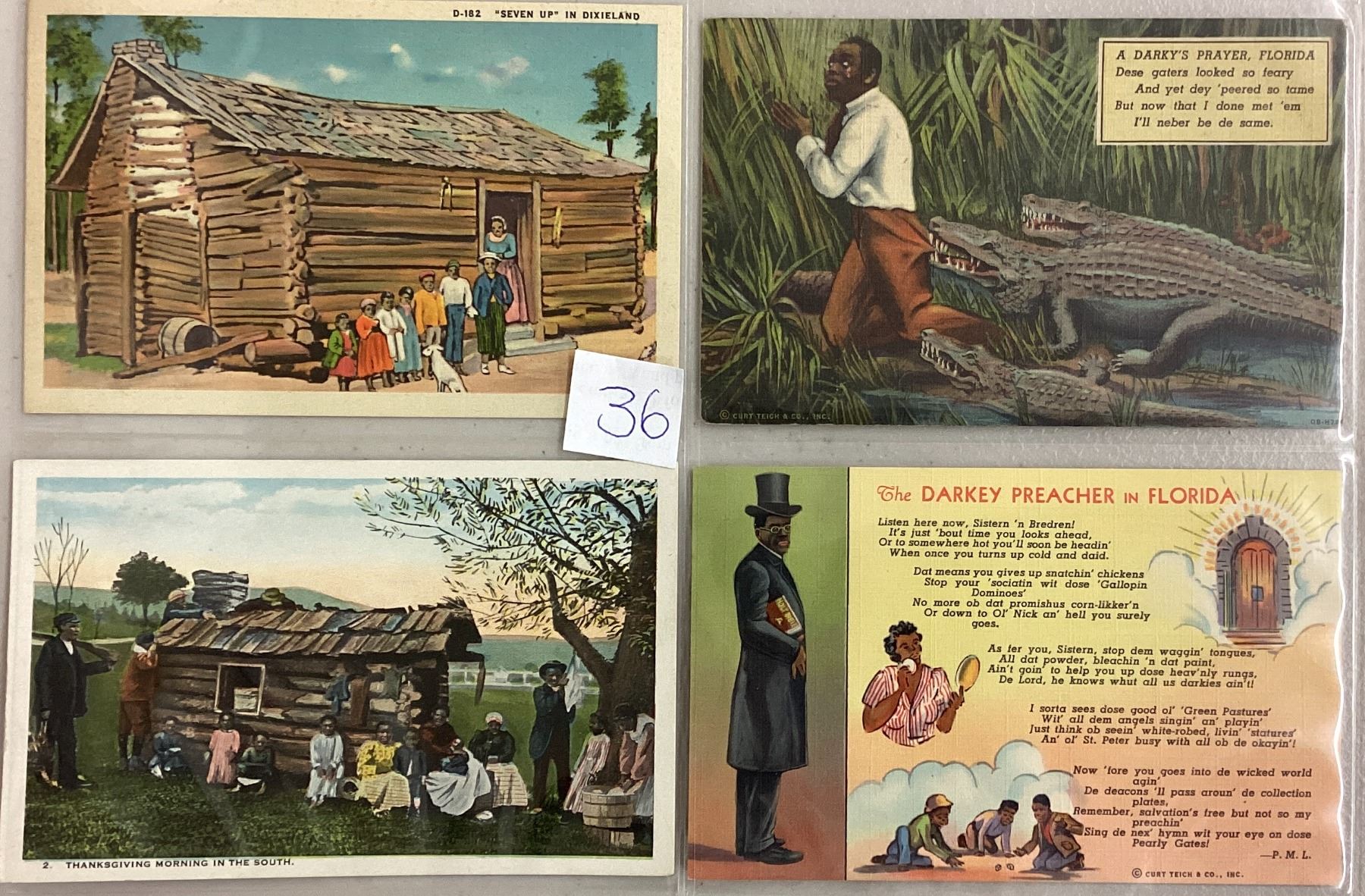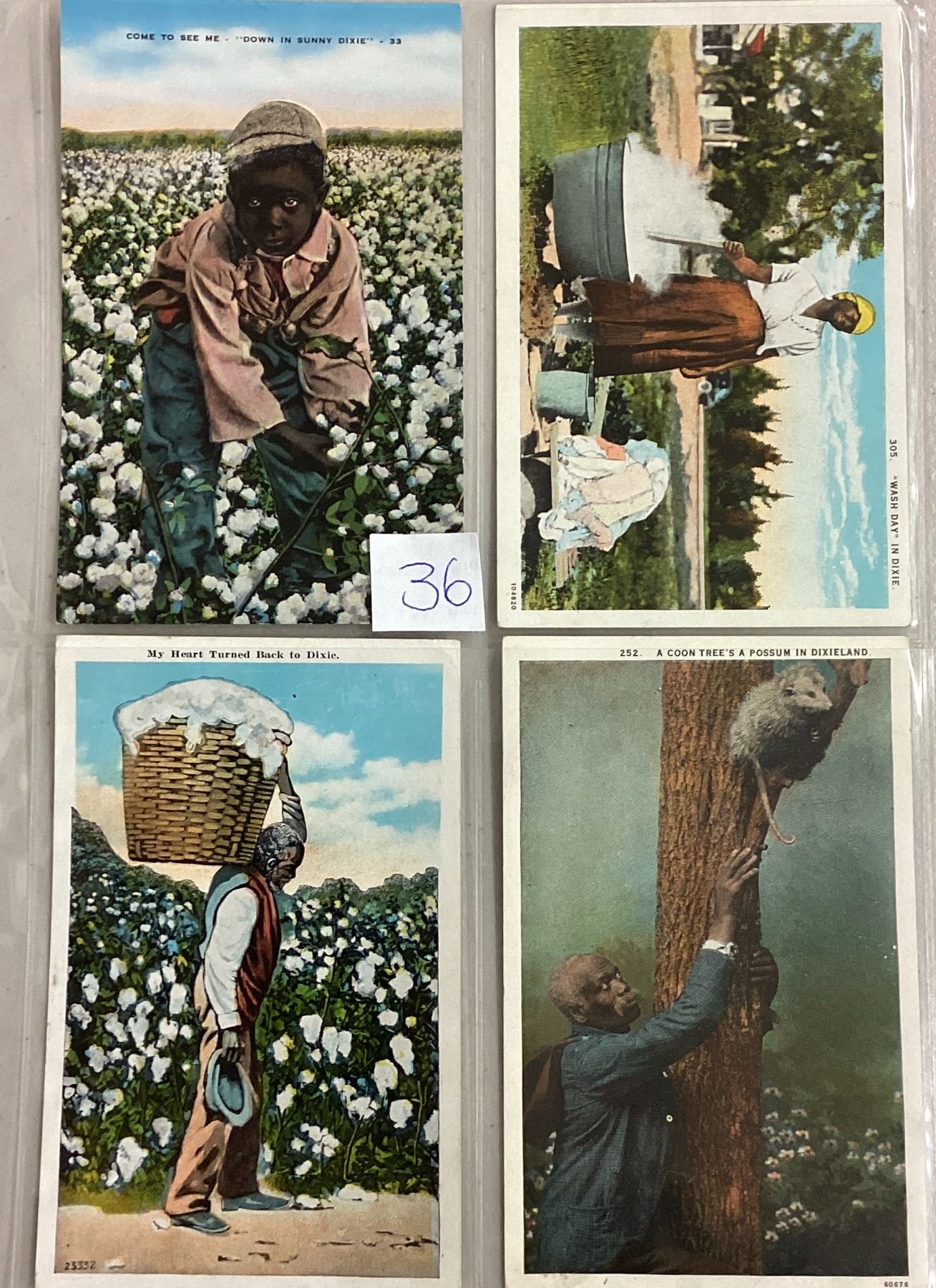 Album of over 50 Black Americana postcards. Early to linen. Some Tucks.