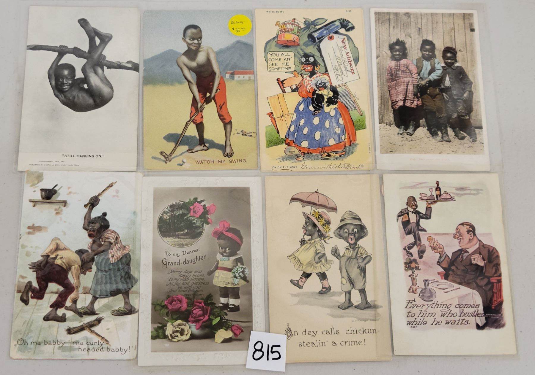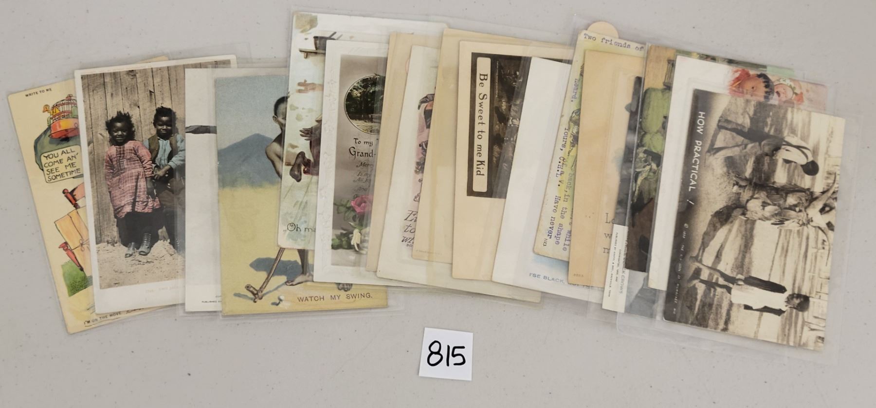 17 early Black Americana postcards. We don't promote but we do recognize the marginalization of many ethnic groups. We encourage bidders to recognize the value and cultural significance of these items, and to participate in a spirit of inclusiveness and mutual respect.