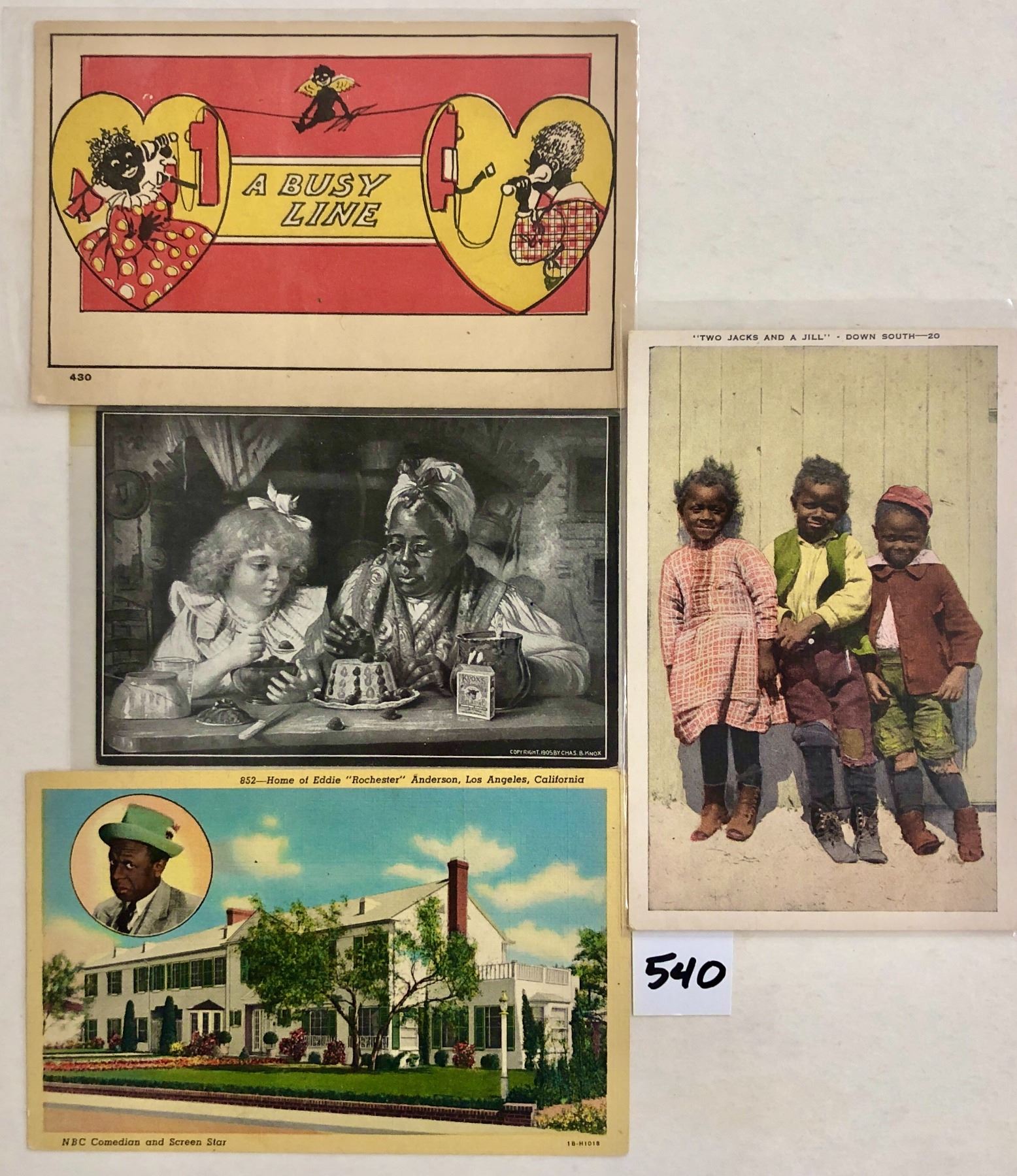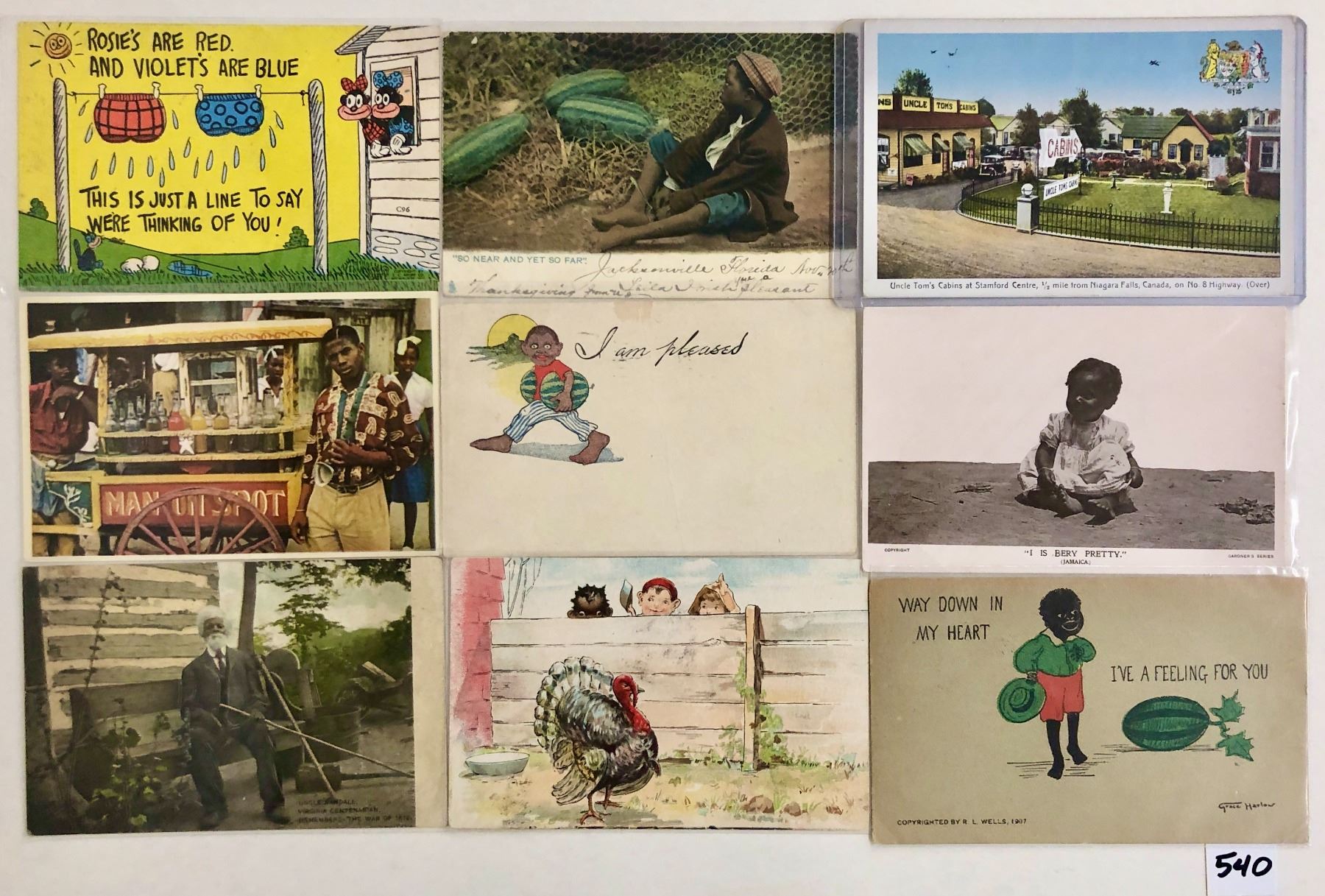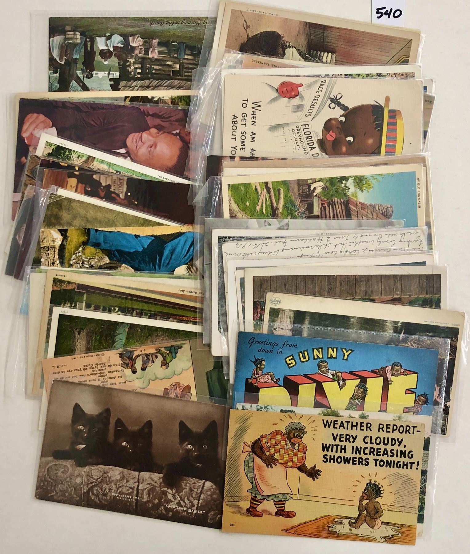 Over 60 Black Americana postcards. Early to linen, some standard size chrome. We don't promote but we do recognize the marginalization of many ethnic groups. We encourage bidders to recognize the value and cultural significance of these items, and to participate in a spirit of inclusiveness and mutual respect.