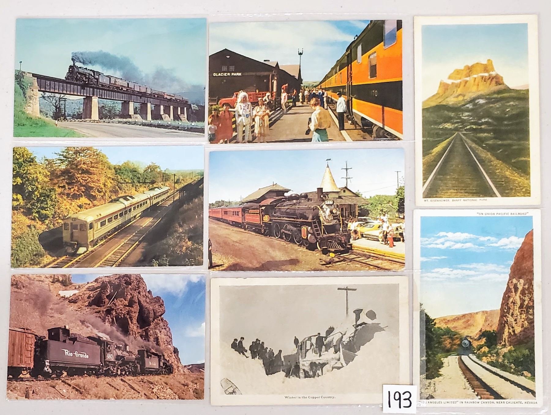 Over 400 train postcards. Mostly all standard size chrome. Some booklet groups.
