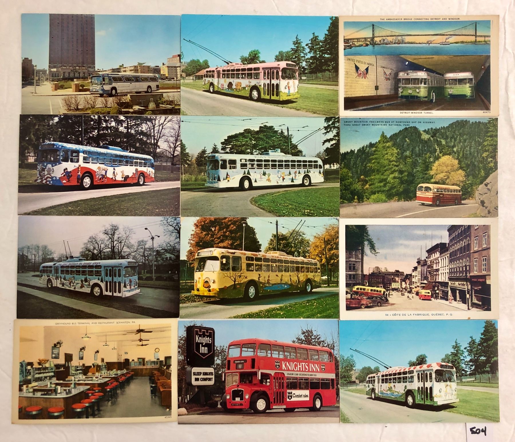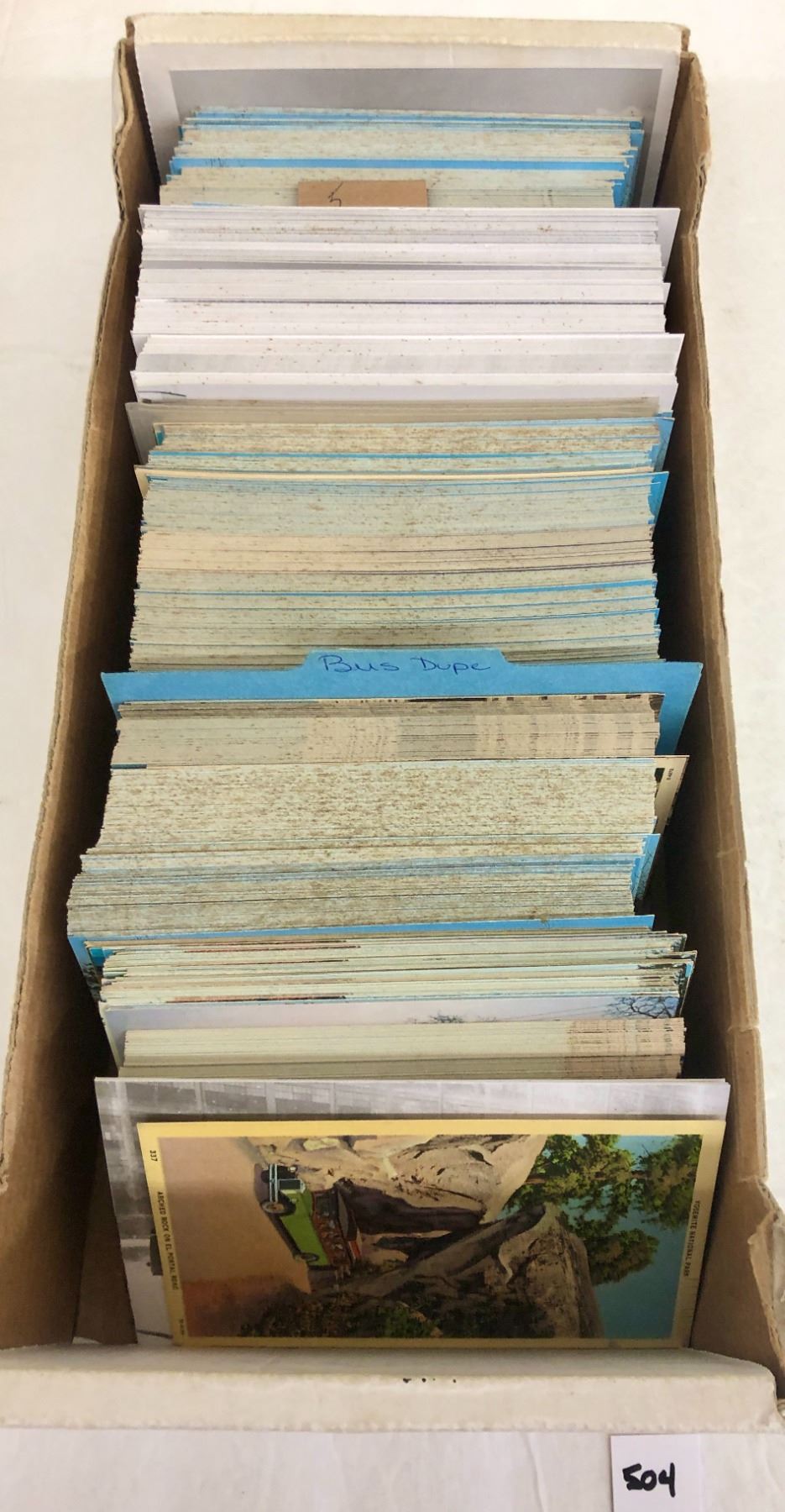 Over 600 postcards of buses. In chunks of duplication. Several different images. Standard size chrome, at least 100 continental chrome size.